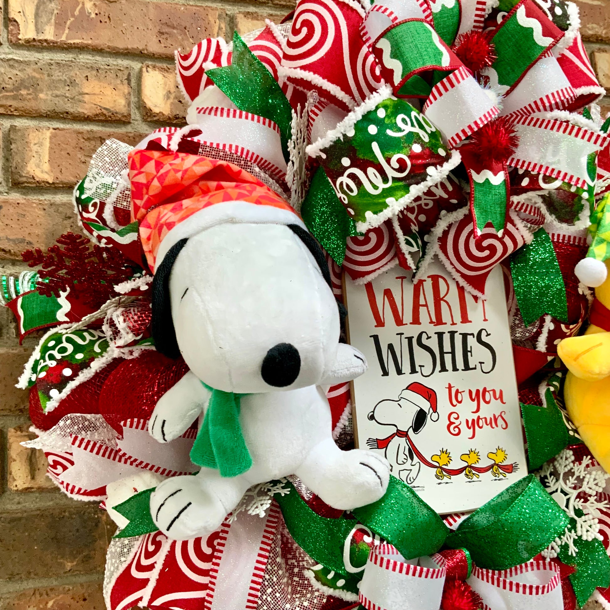 Christmas Snoopy Wreath, Christmas Snoopy Decor, Large Happy Holidays Wreath, Christmas Peanuts Decor, Snoopy and Woodstock Decor, Snoopy Merry Christmas Wreath, 2025