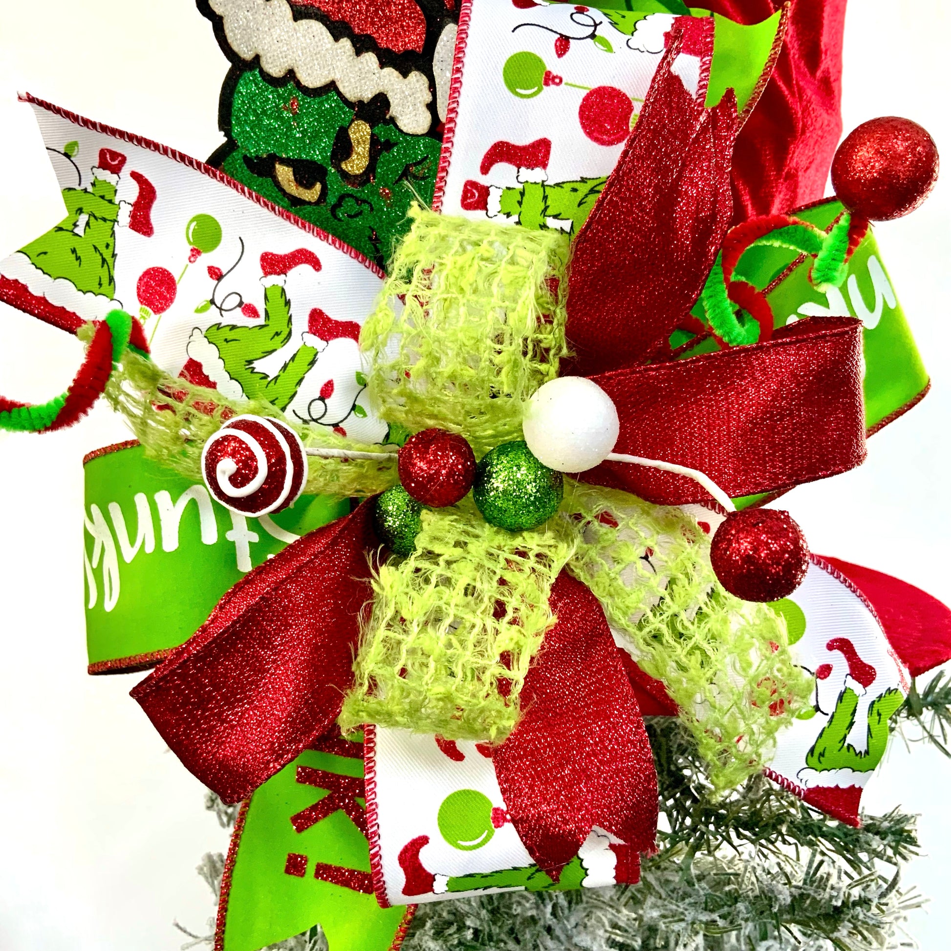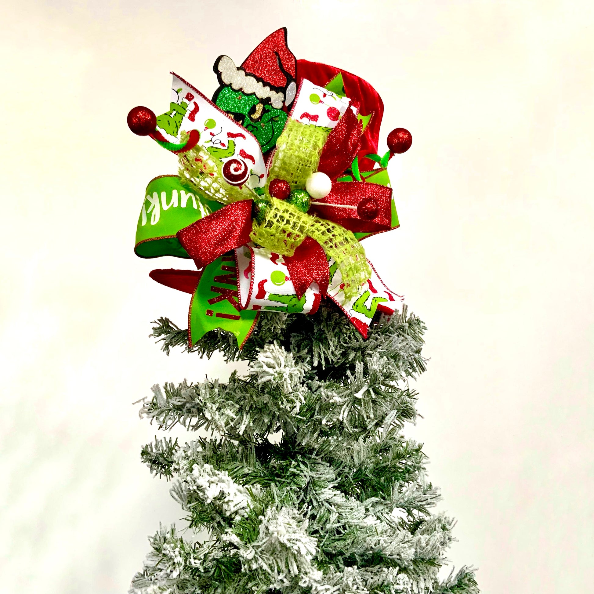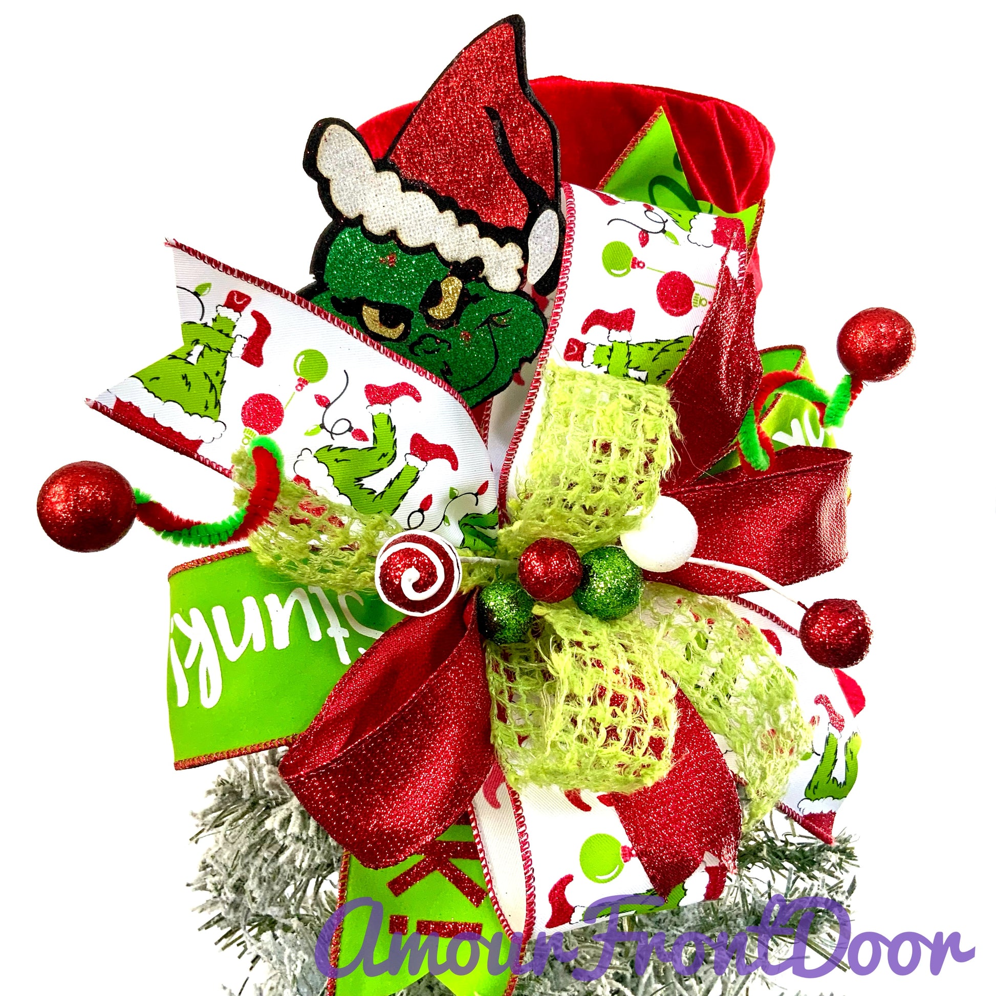 Christmas Tree Topper Bow, Grinch Tree Topper Bow, Christmas Hat Decor, Grinch Decor, Christmas Grinch Bow, Christmas Large Bow For Wreaths, 2025