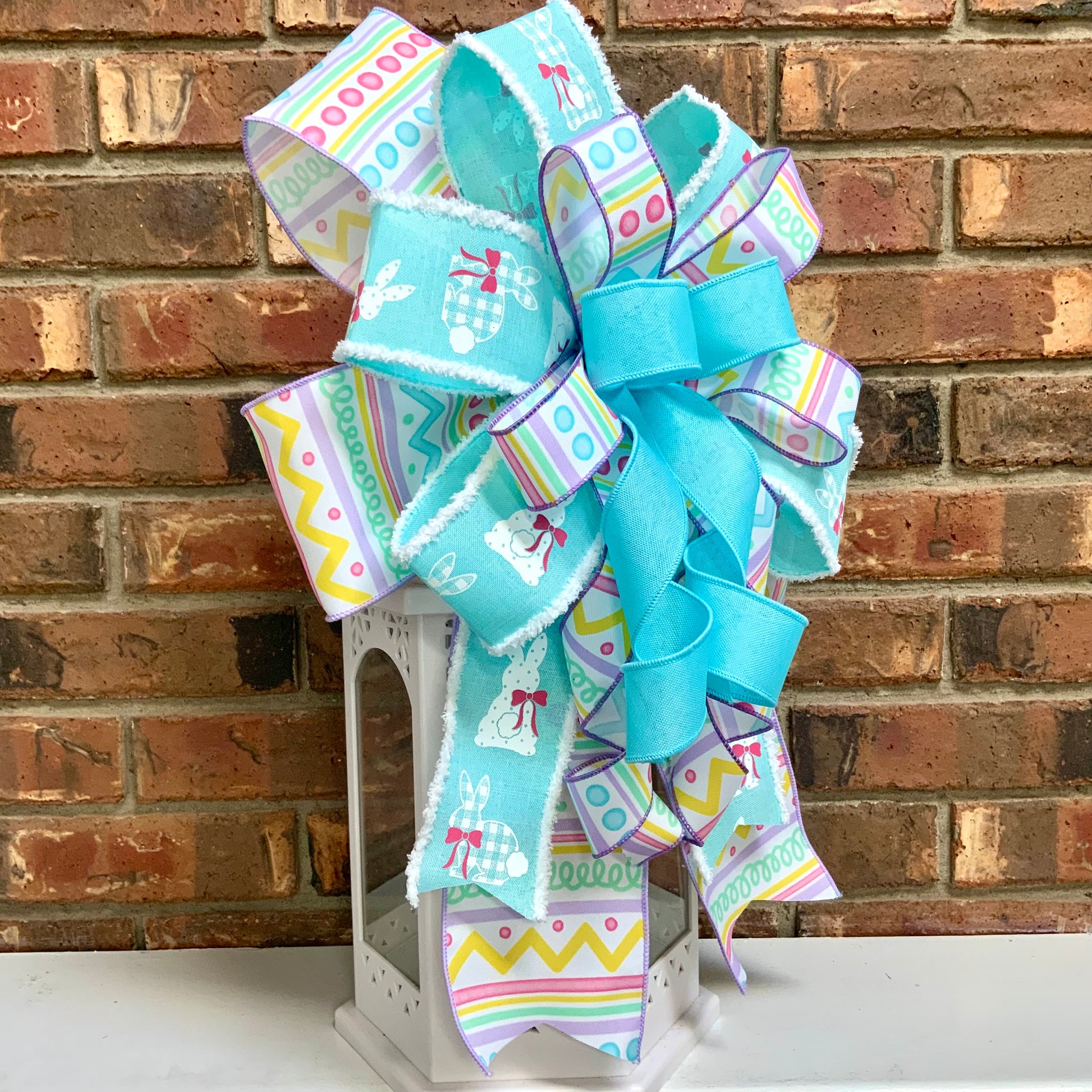 Easter Bow - Pastel Spring Bunny & Egg Lantern Bow | Baby Blue Yellow Purple Wreath Mailbox Sconce Decor 2026