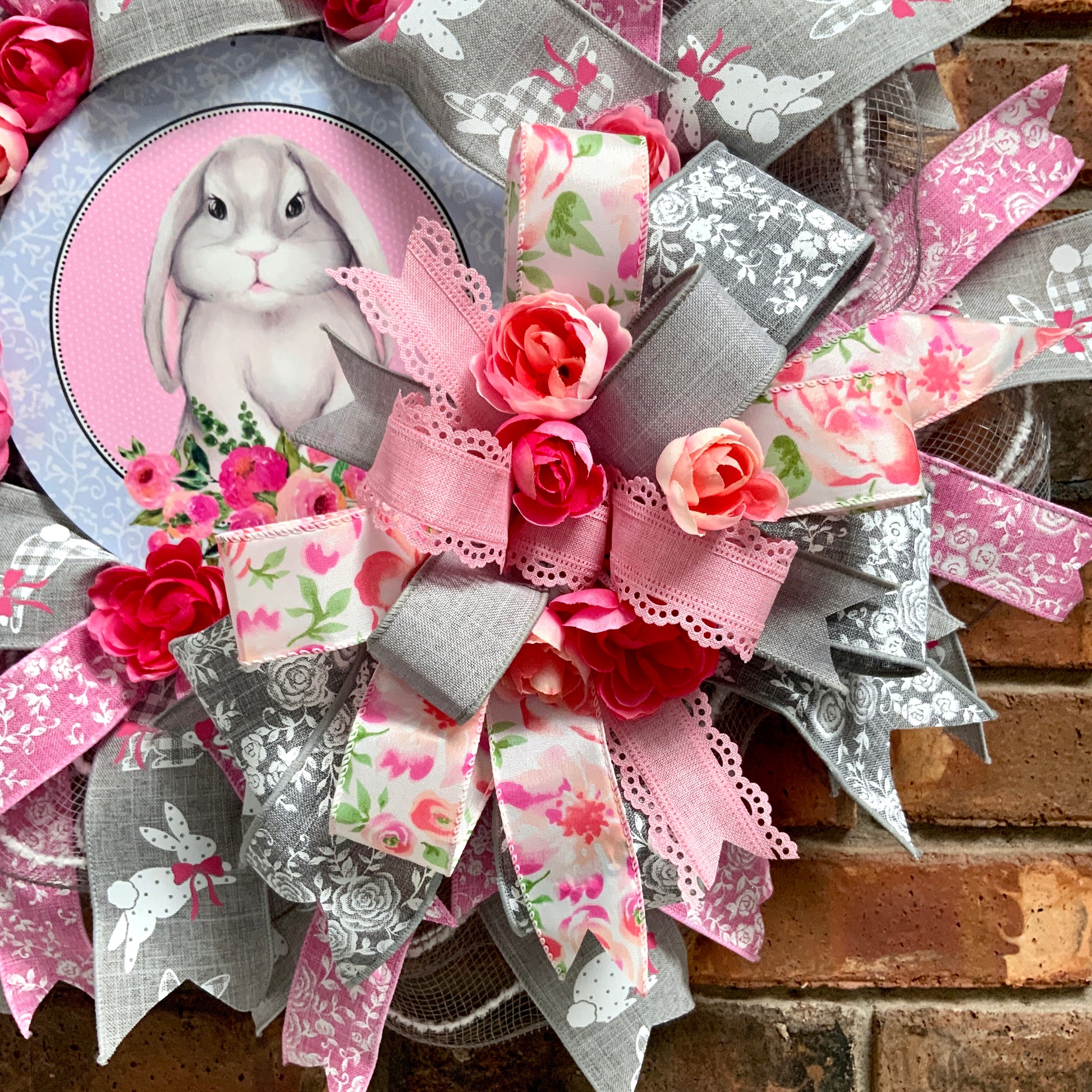 Easter Pancake Wreath, Easter Wreath For Front Door, Easter Rabbit Wreath, Easter Bunny Wreath, Spring Pancake Wreath, Spring Easter Wreath
