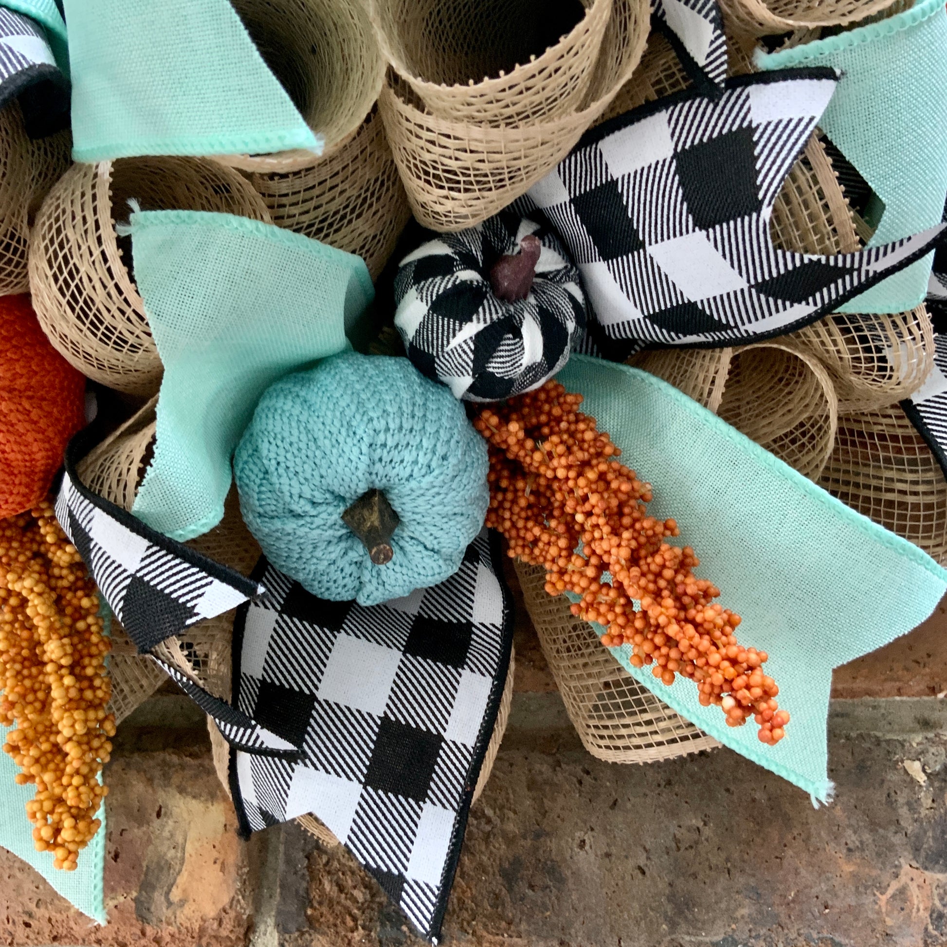 Fall Pumpkin Wreath, Blue Pumpkin Fall Door Hanger, Turquoise Fall Decor, Fall Buffalo Check Wreath, Autumn Wreath, Country Farmhouse Fall Wreath for Front Door