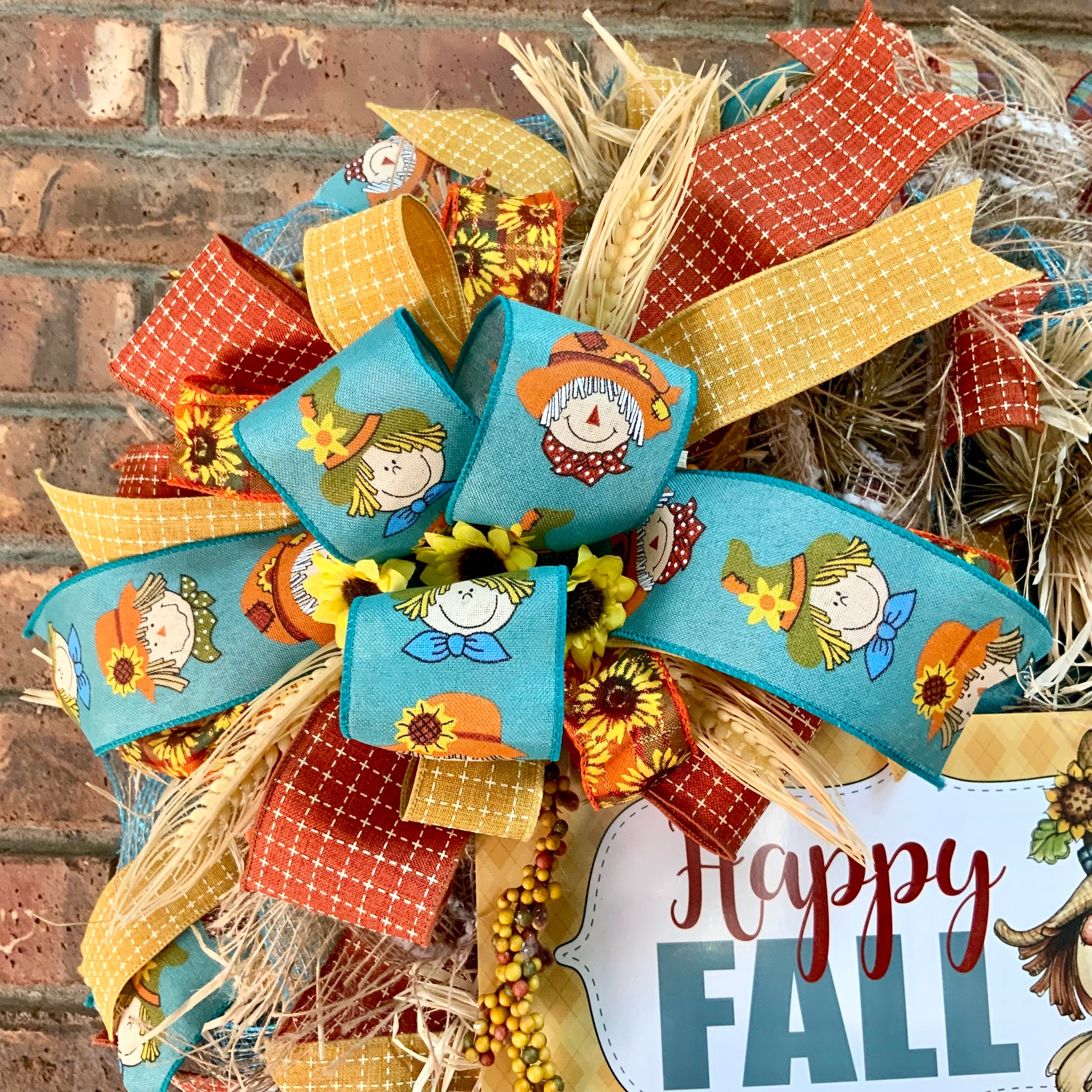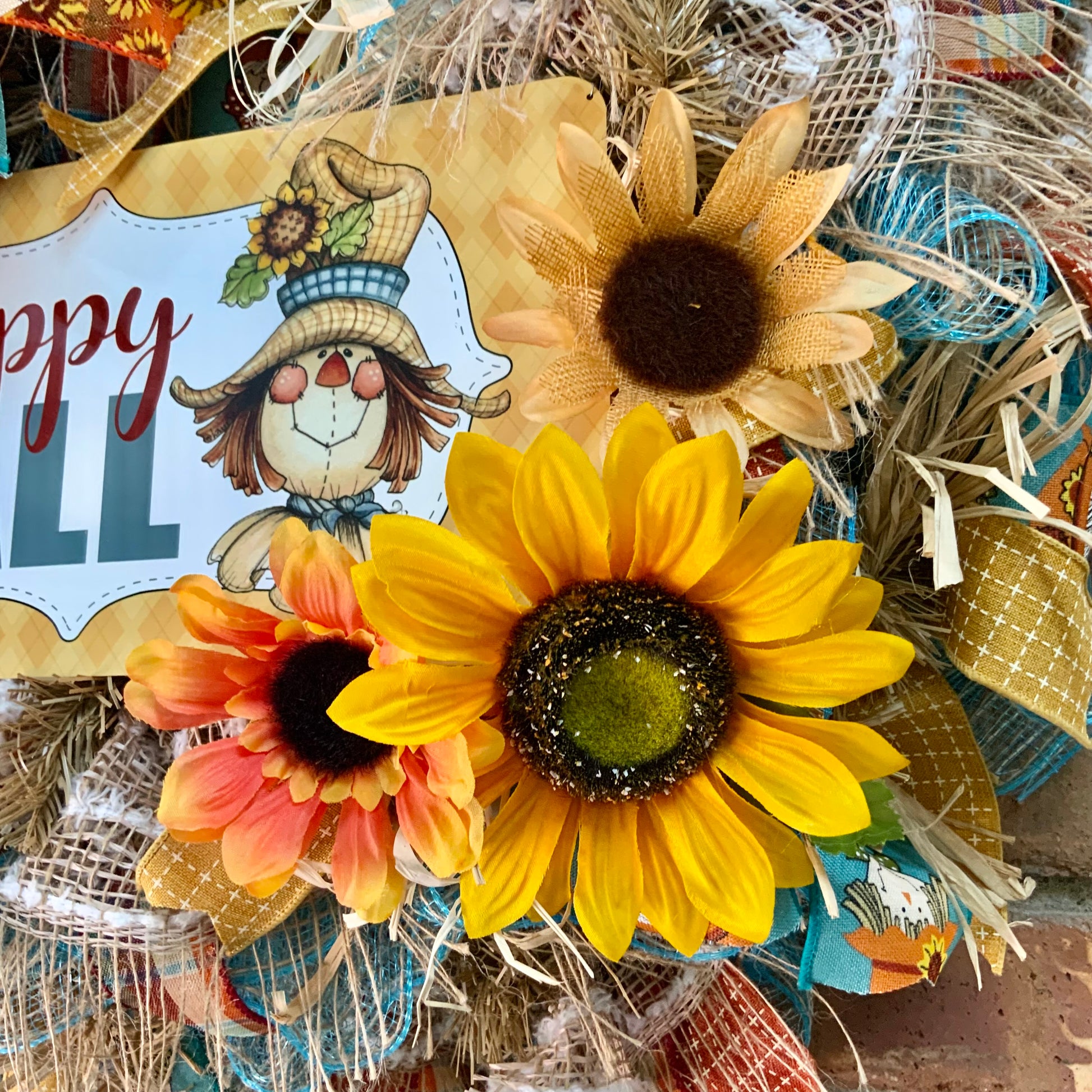 Fall Scarecrow Wreath, Happy Fall Scarecrow, Fall Sunflower Wreath, Fall Straw Wreath, Large Scarecrow Wreath, Fall Country Decor