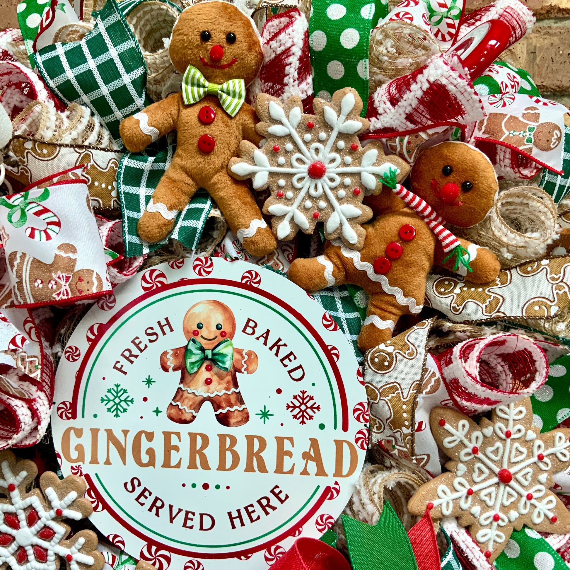 Bring a unique touch of baking to your Christmas spirit with this delicious and delightful gingerbread wreath. Crafted with a gingerbread man and woman, and dusted with Christmas baking embellishments, it's sure to bring a smile to any entry. Perfect for hanging on the front door to welcome you and your guests. Makes a wonderful holiday gift.