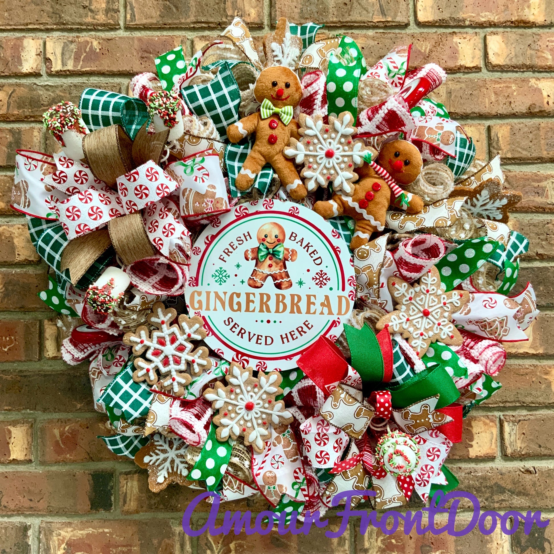 Gingerbread Wreath, Gingerbread Christmas Wreath, Gingerbread Man Wreath, Gingerbread Woman Christmas Decor, Christmas Wreath For Front Door, 2024