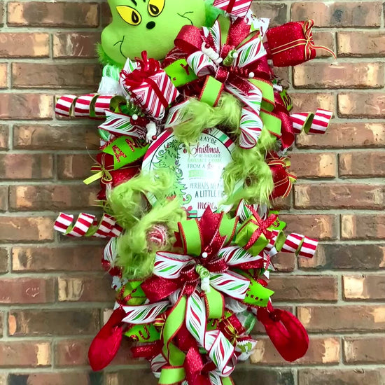 Grinch Swag, Large Grinch Door Hanger, Christmas Grinch Wreath, Custom Order