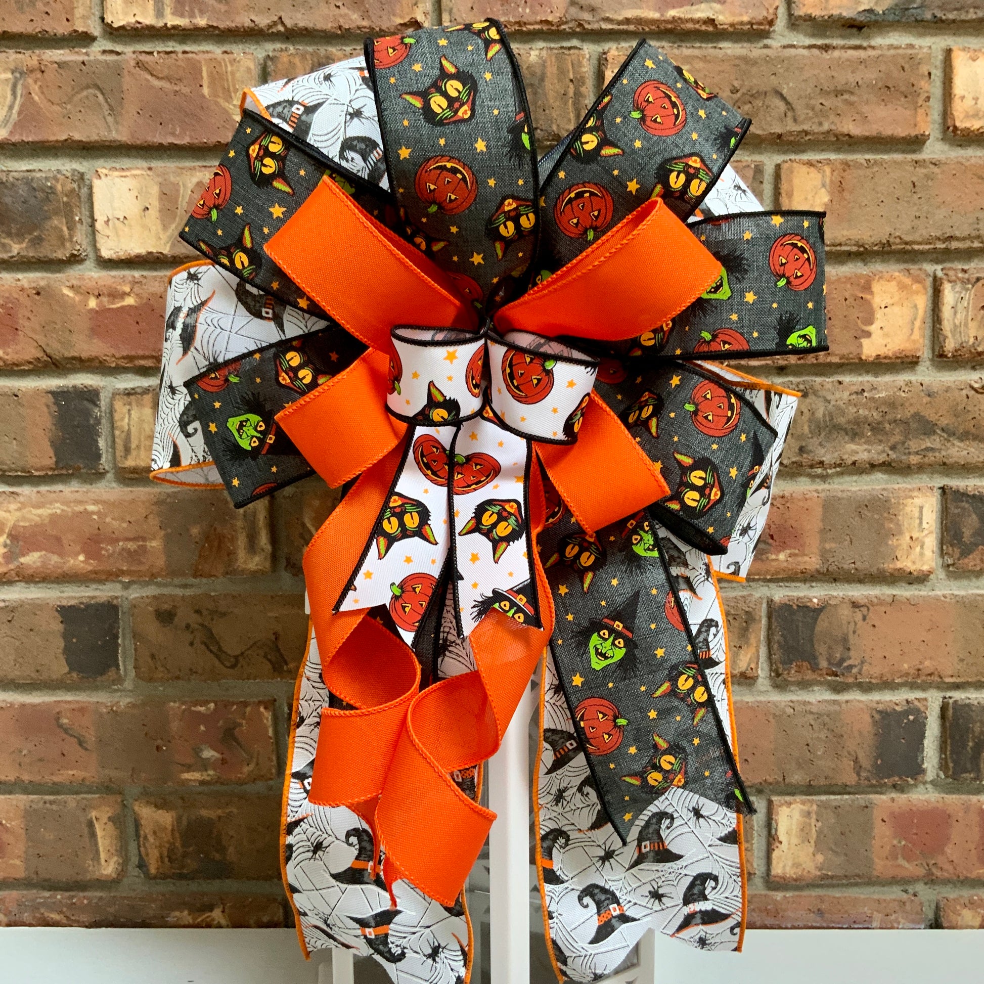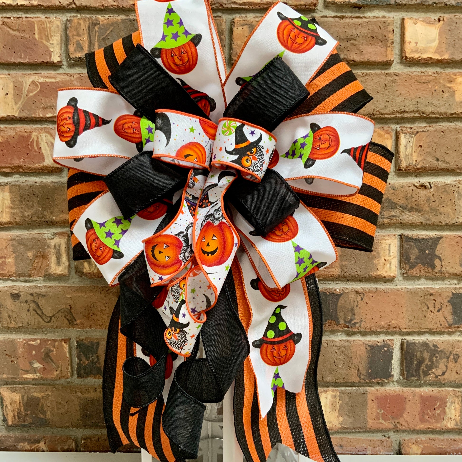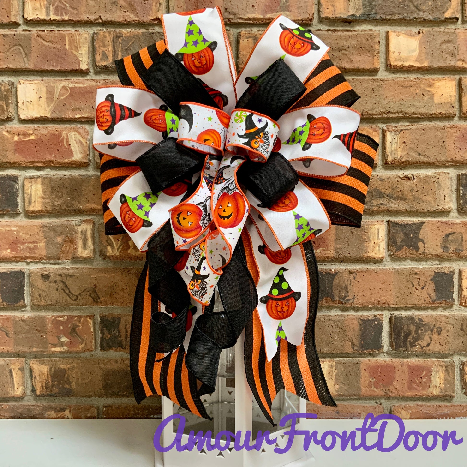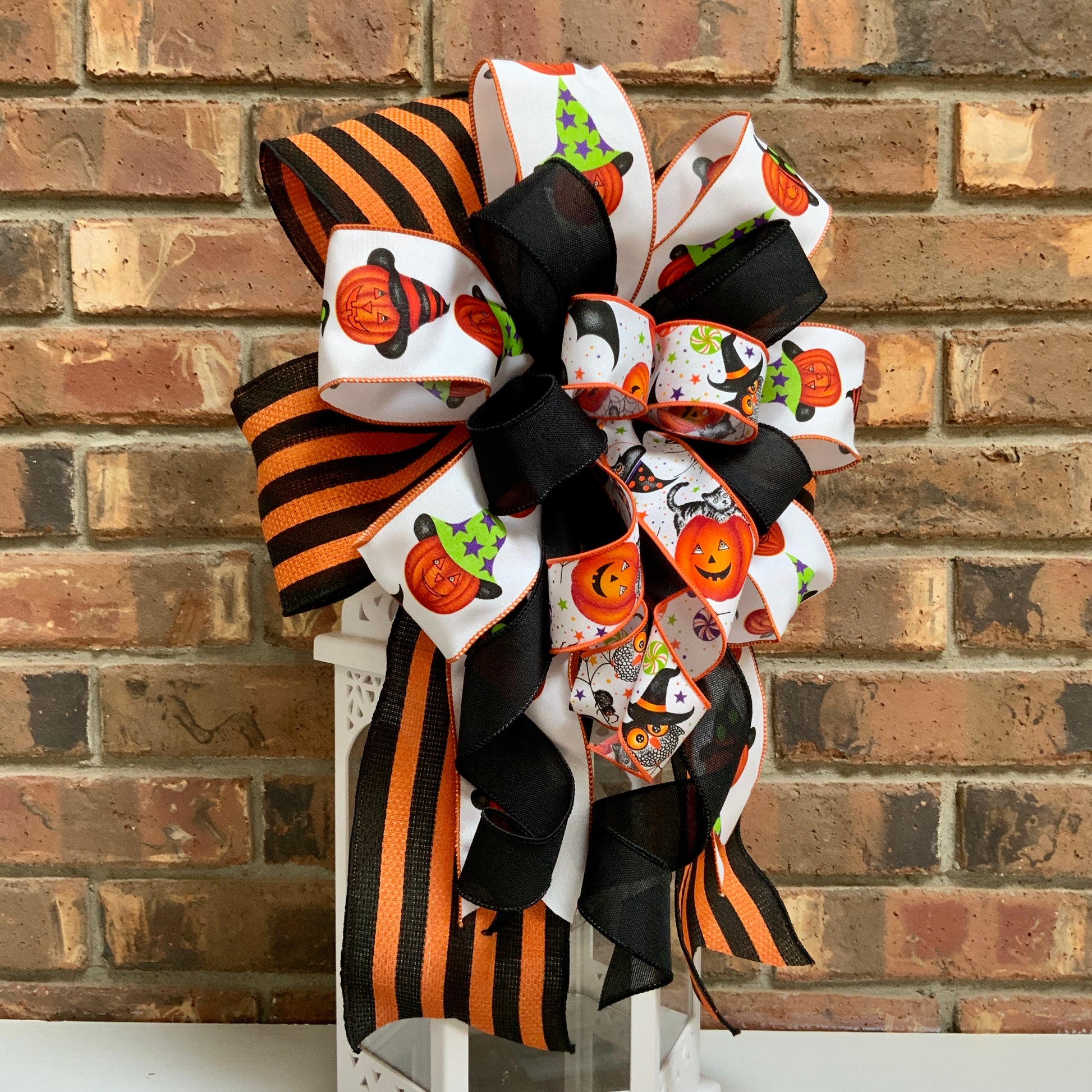 Halloween Bow For Lanterns, Halloween Mailbox Decor, Halloween Sconce Bow, Halloween Bow For Wreaths
