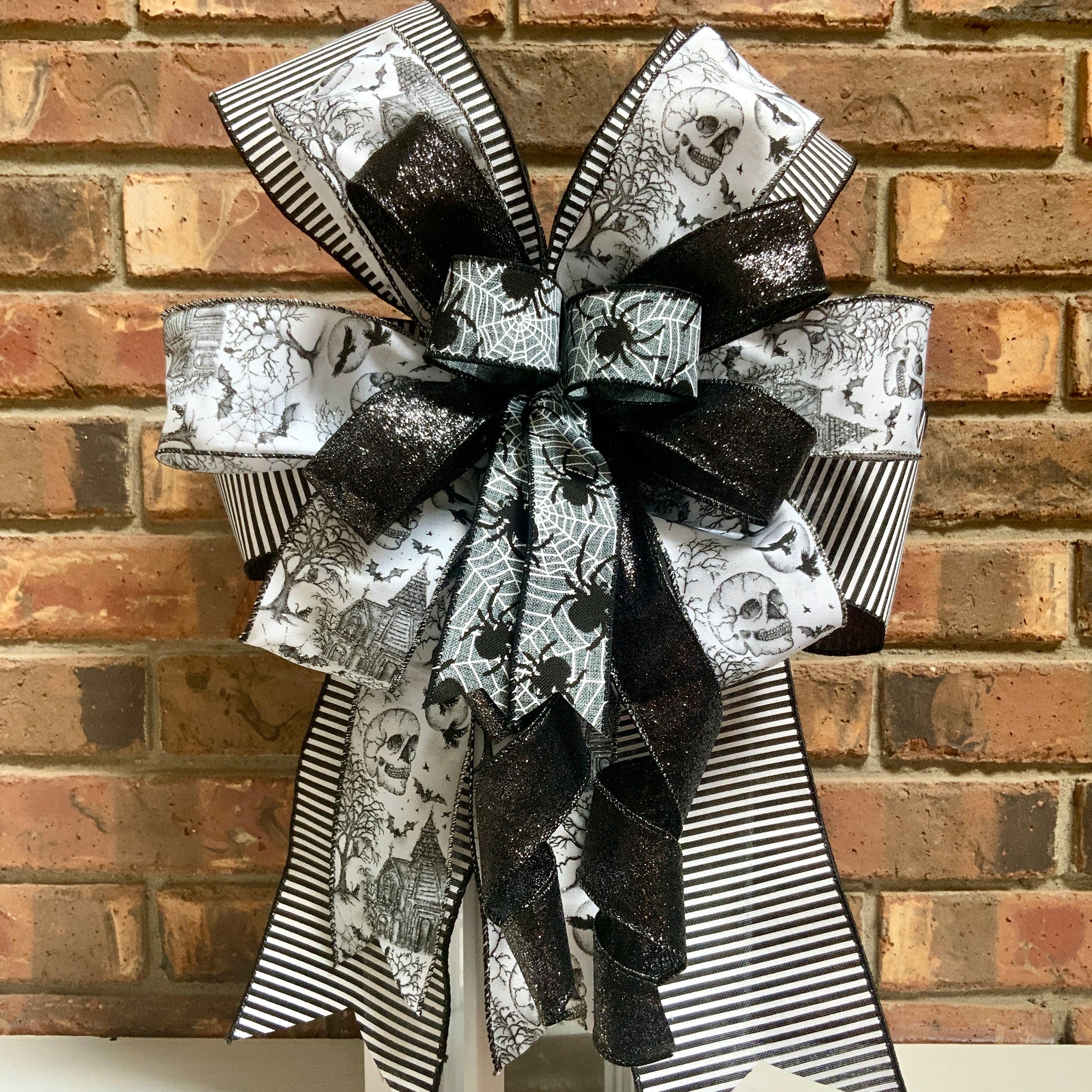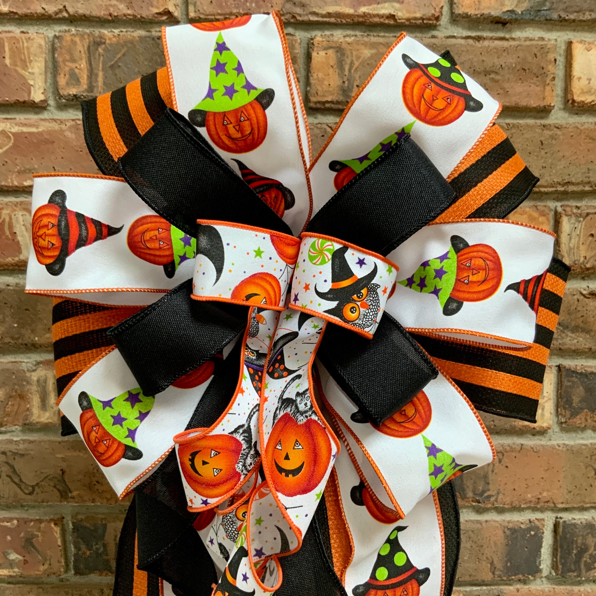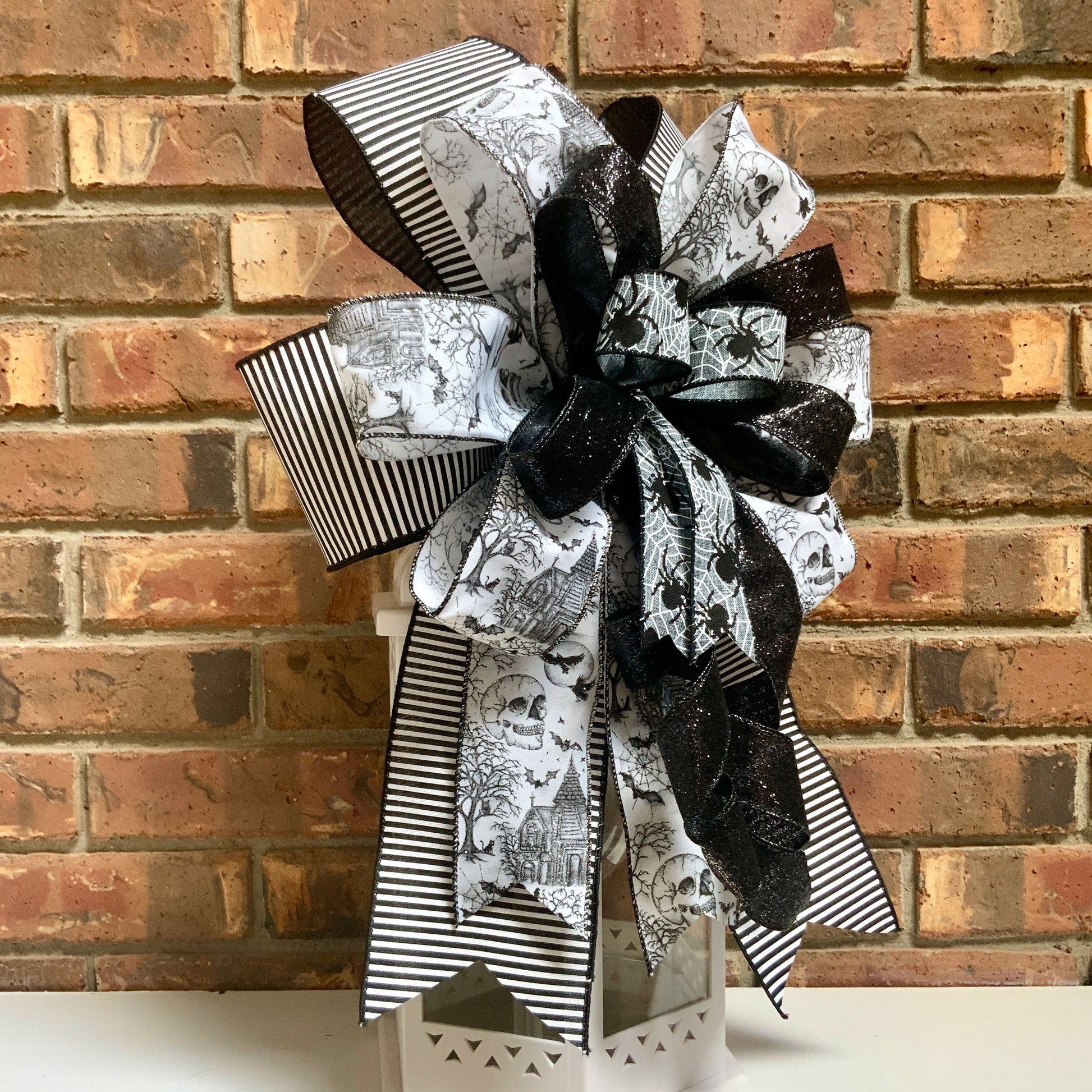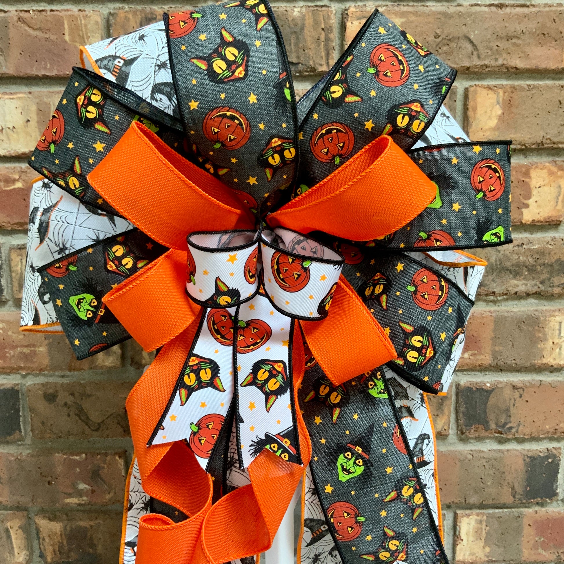 Halloween Bow For Lanterns, Halloween Mailbox Decor, Halloween Sconce Bow, Halloween Bow For Wreaths