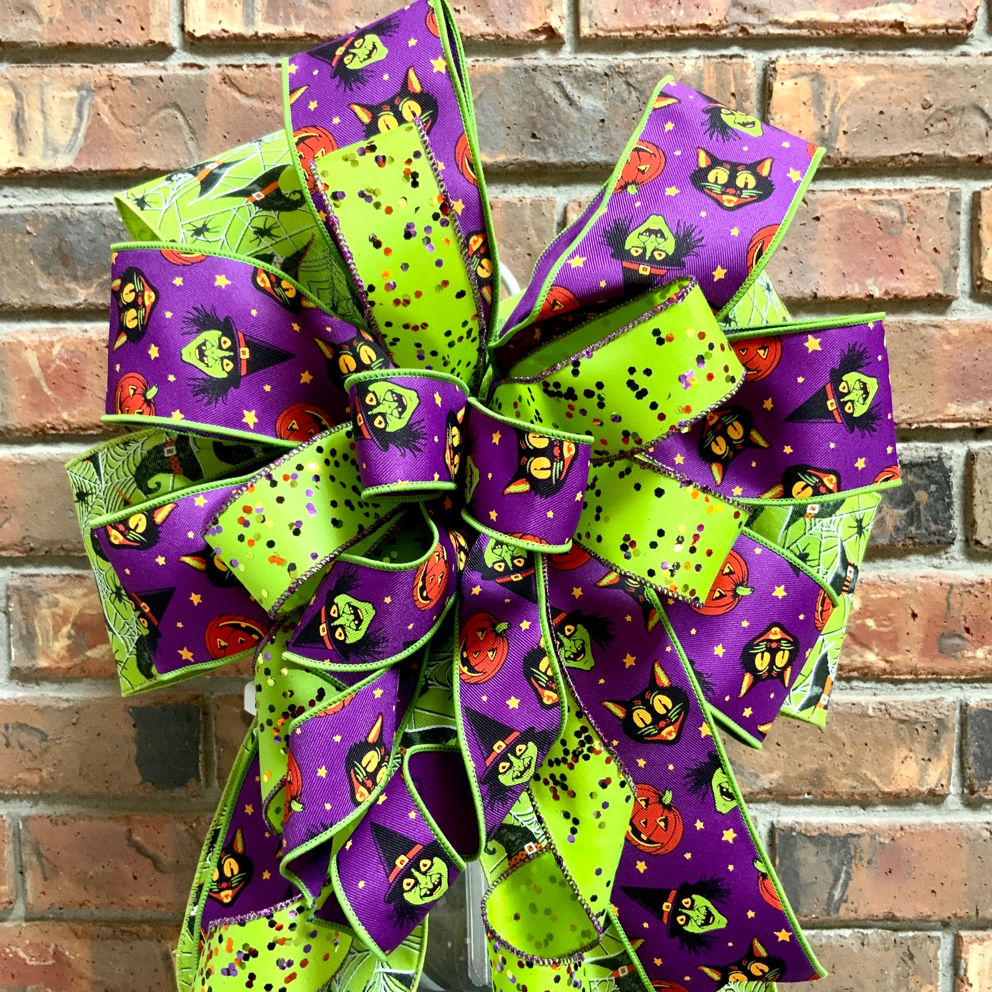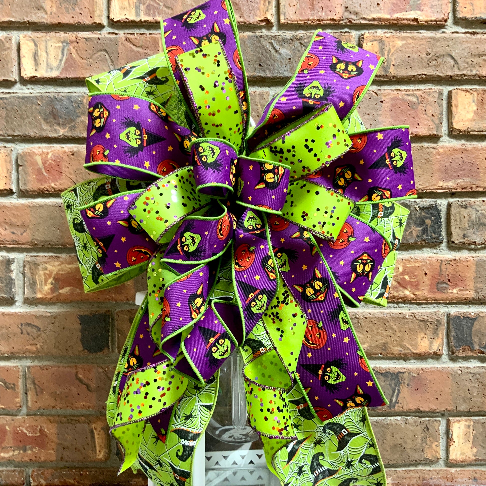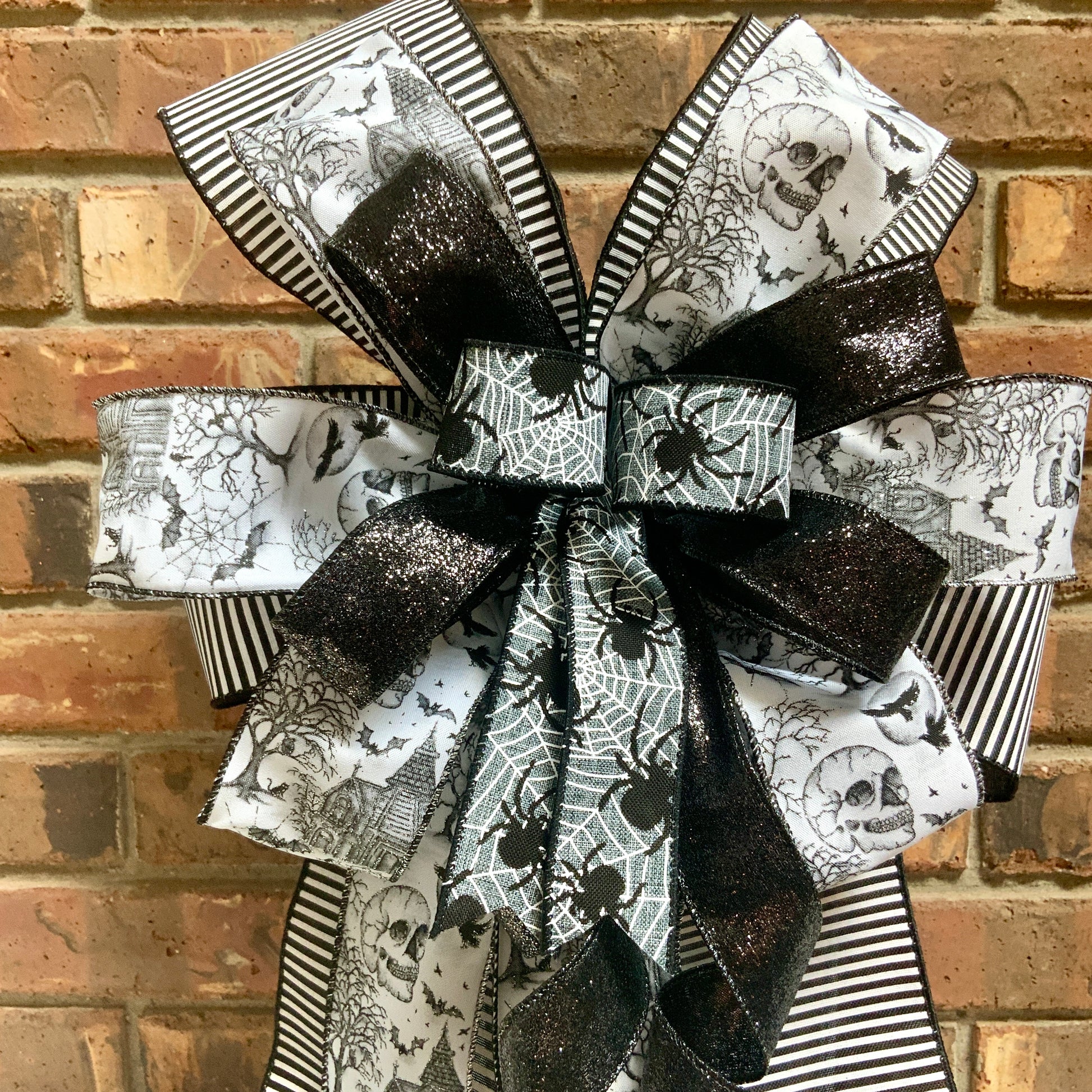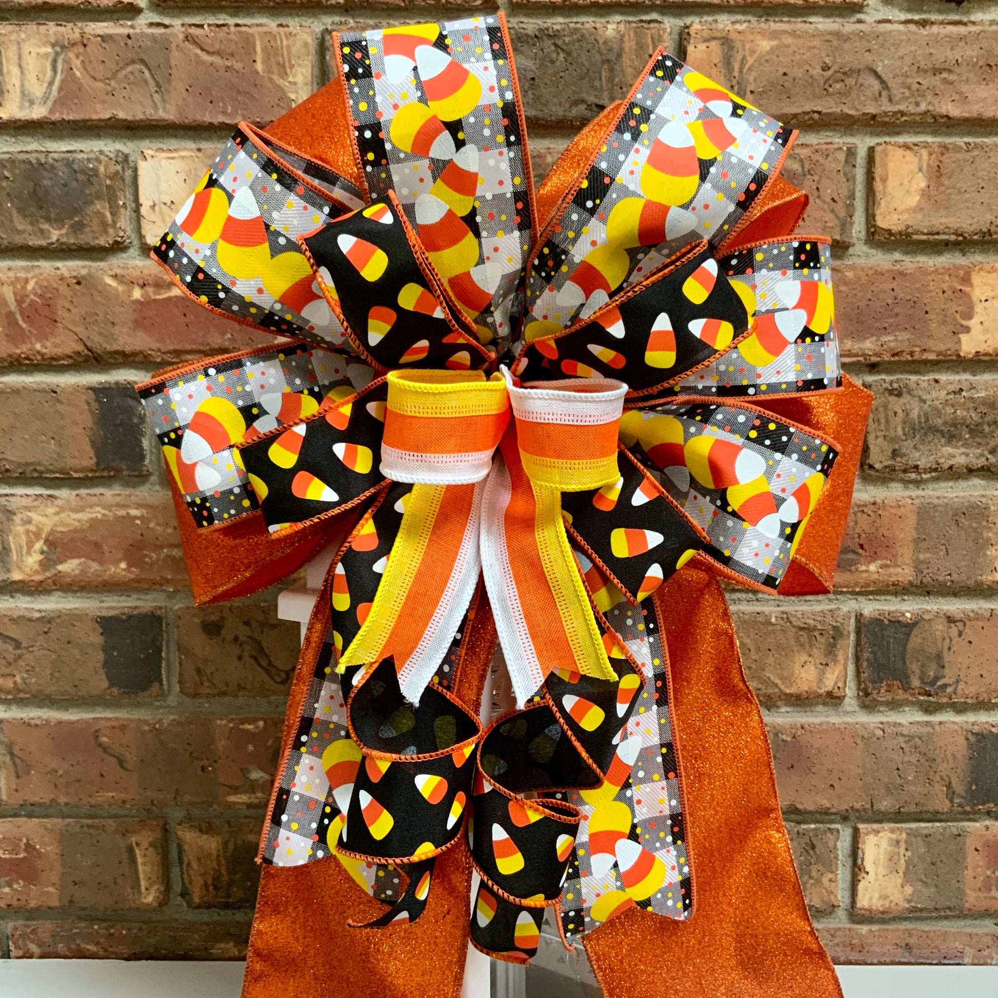 Halloween Bow For Lanterns, Halloween Mailbox Decor, Halloween Sconce Bow, Halloween Bow For Wreaths