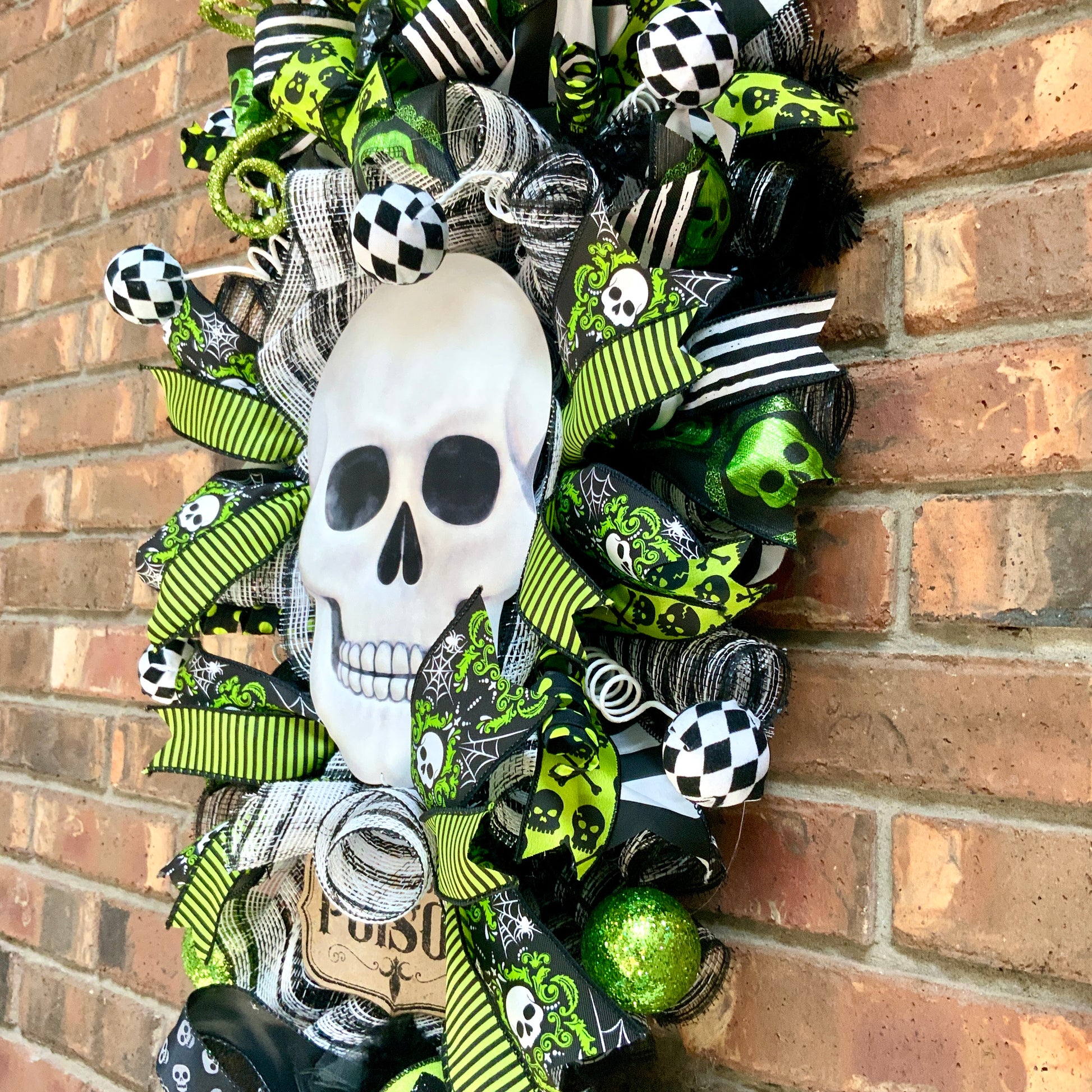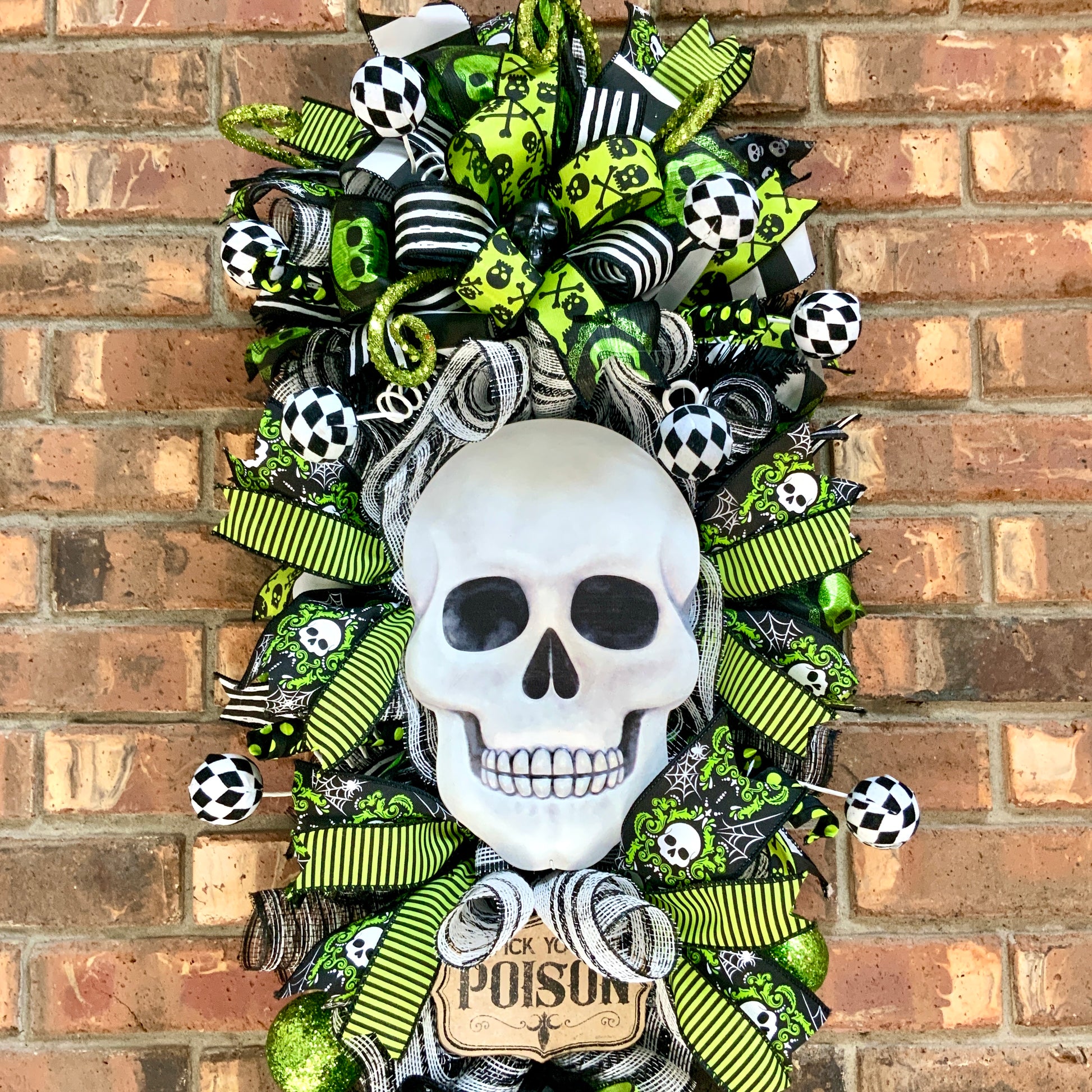 Halloween Swag, Large Halloween Wreath, Halloween Skeleton Door Hanger, Skull Decor, Black Skull Decor, Halloween Poison Decor