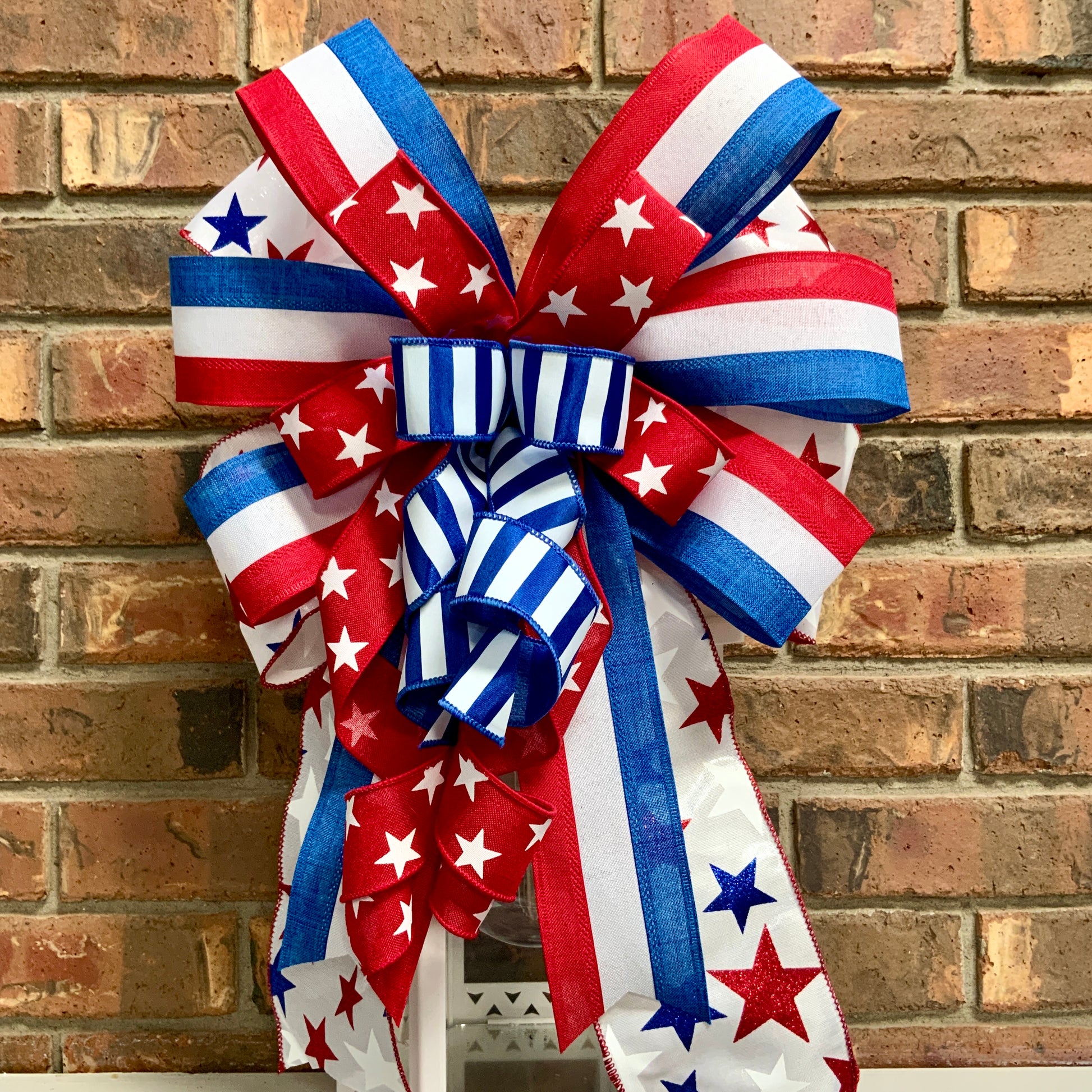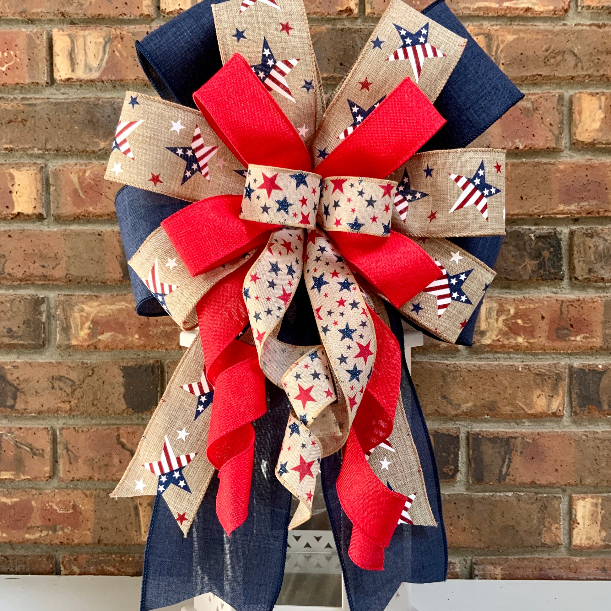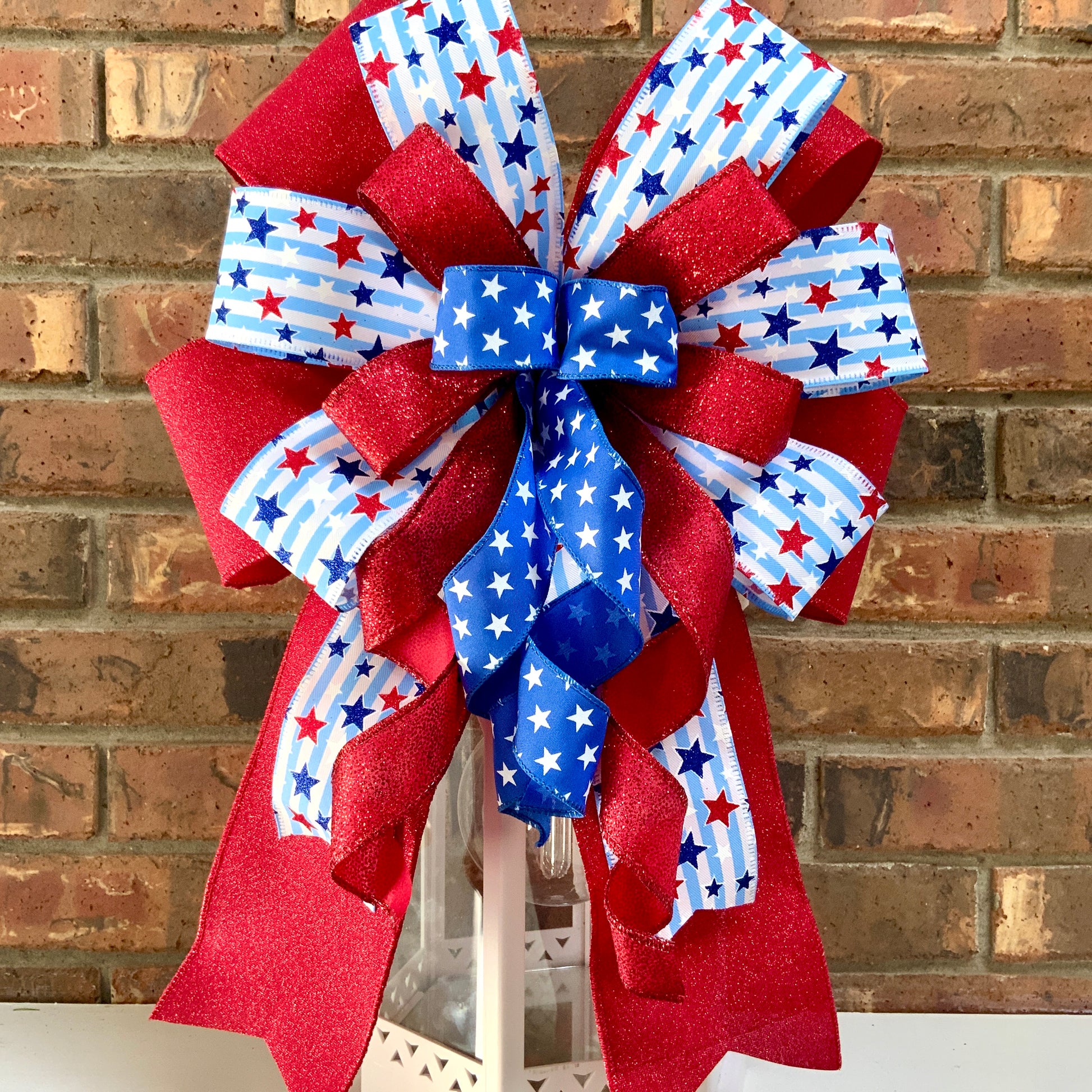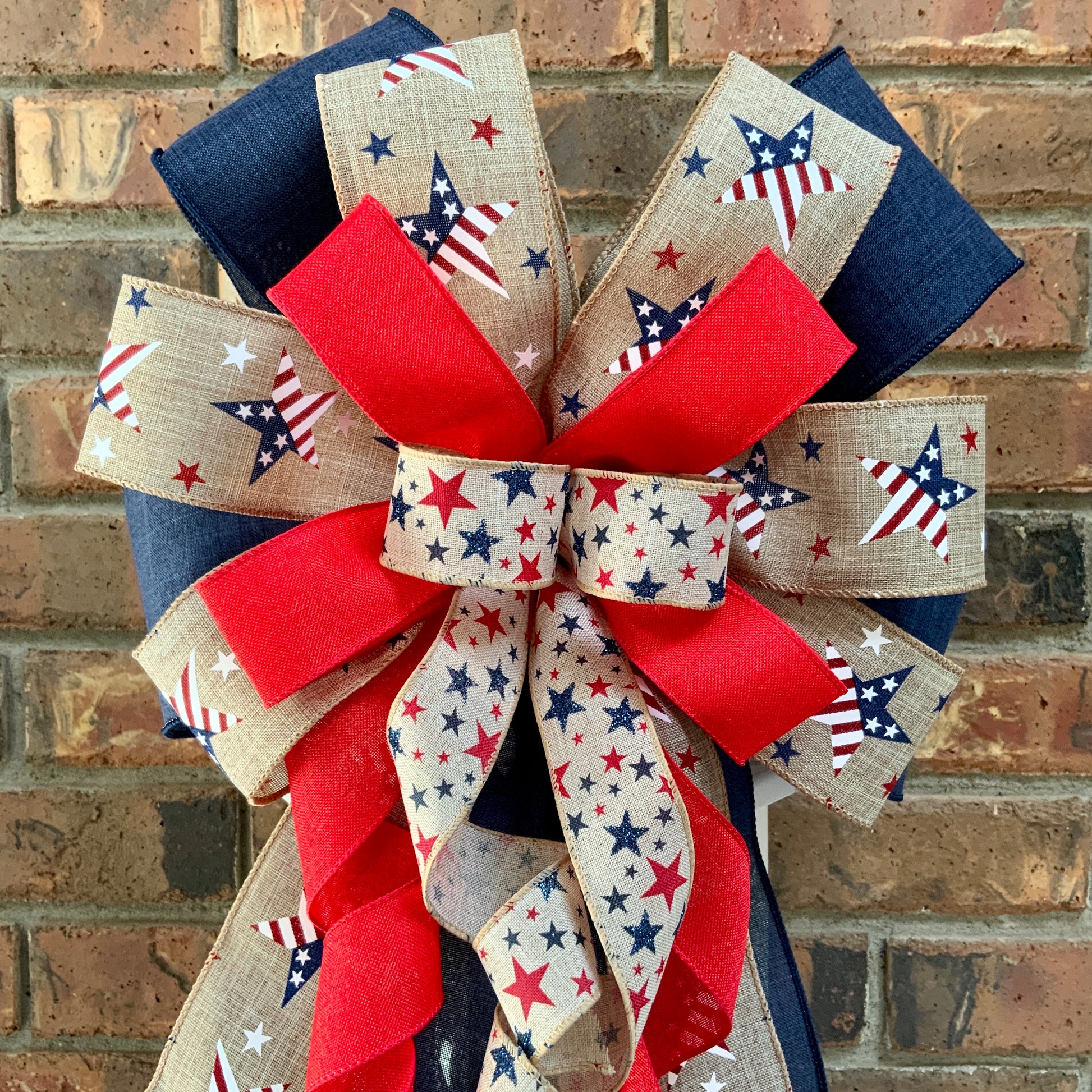 Patriotic Bow, American Bow, USA Bow, Fourth of July Sconce Bow, Independence Day Mailbox Bow, Patriotic Lantern Bow, Memorial Day Decor, Veterans Day Decor, 2024