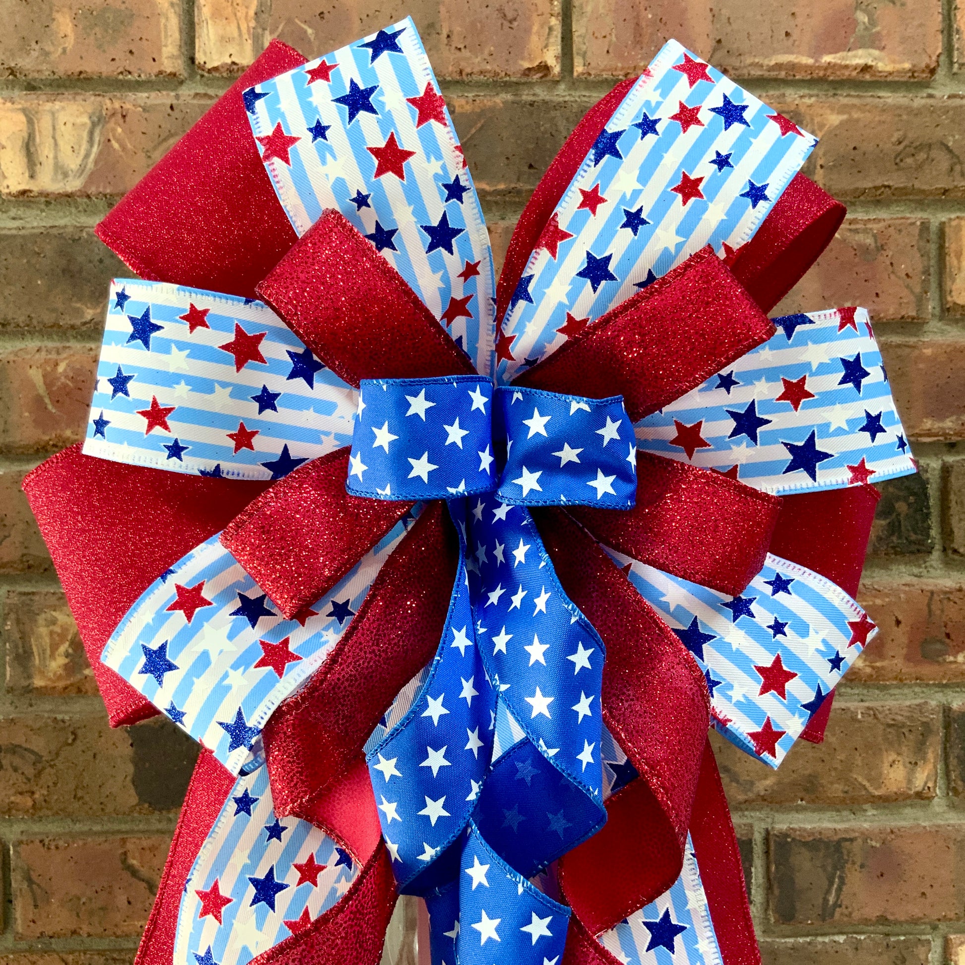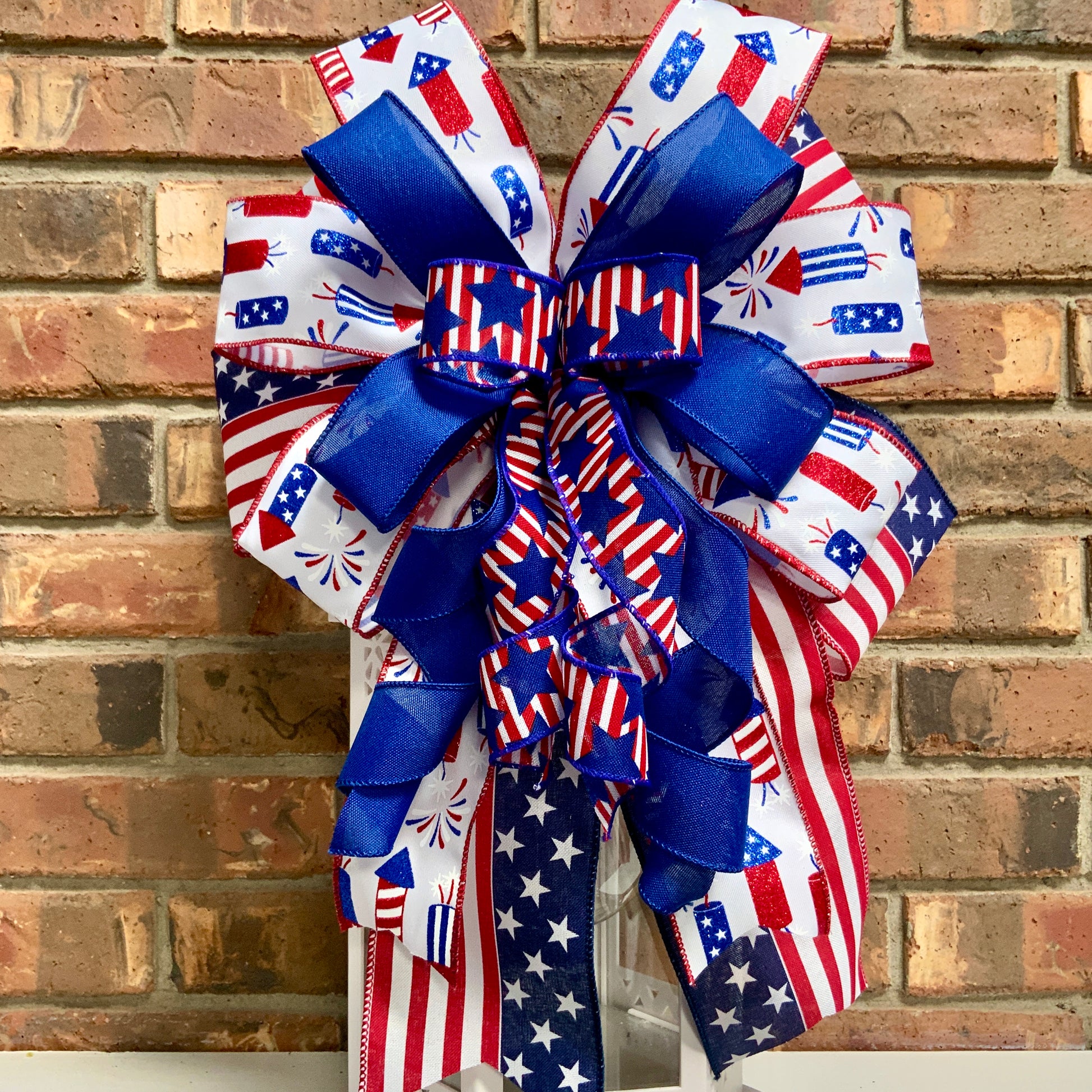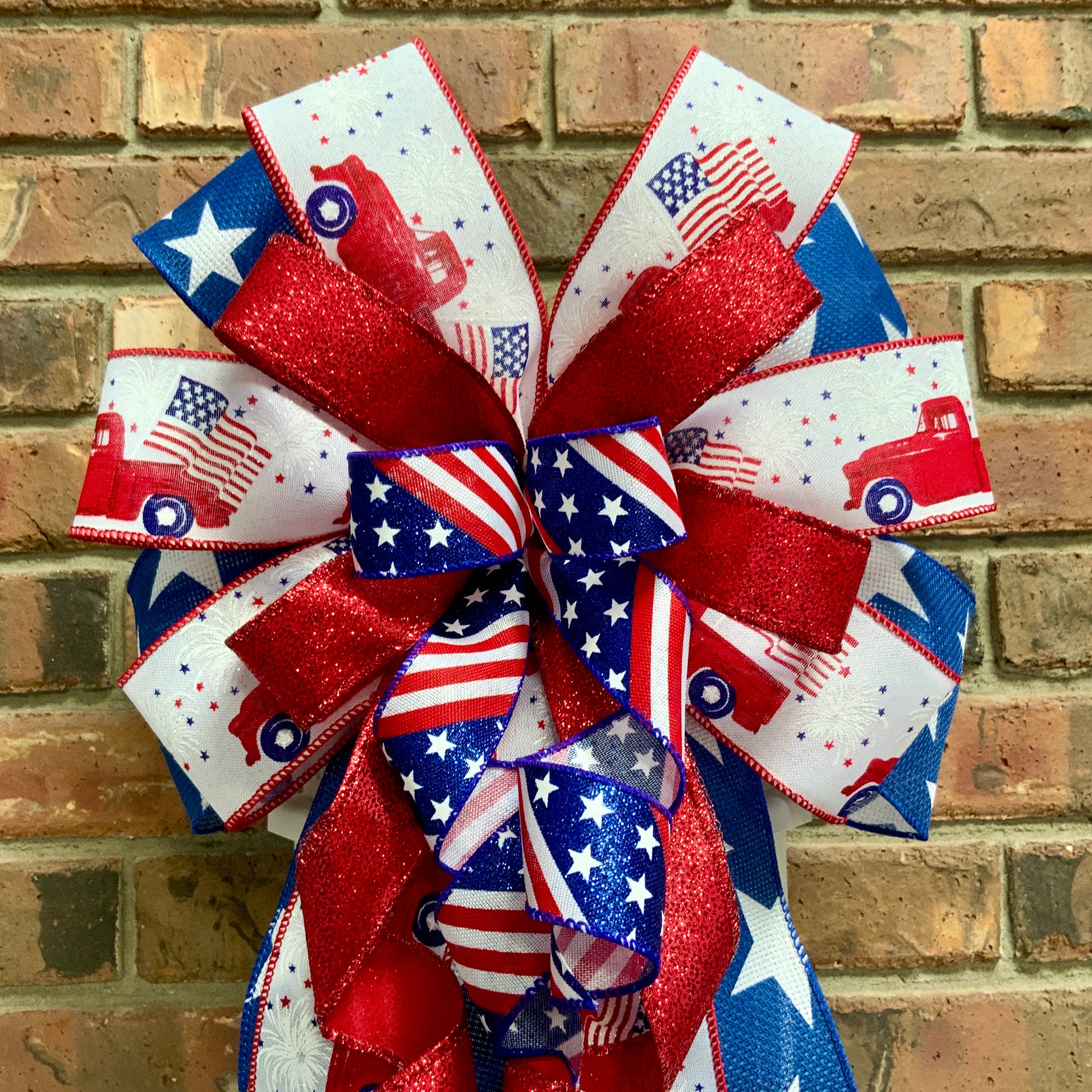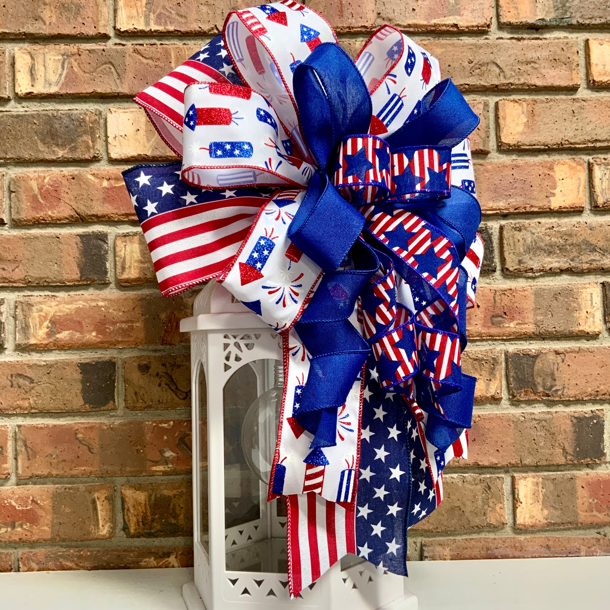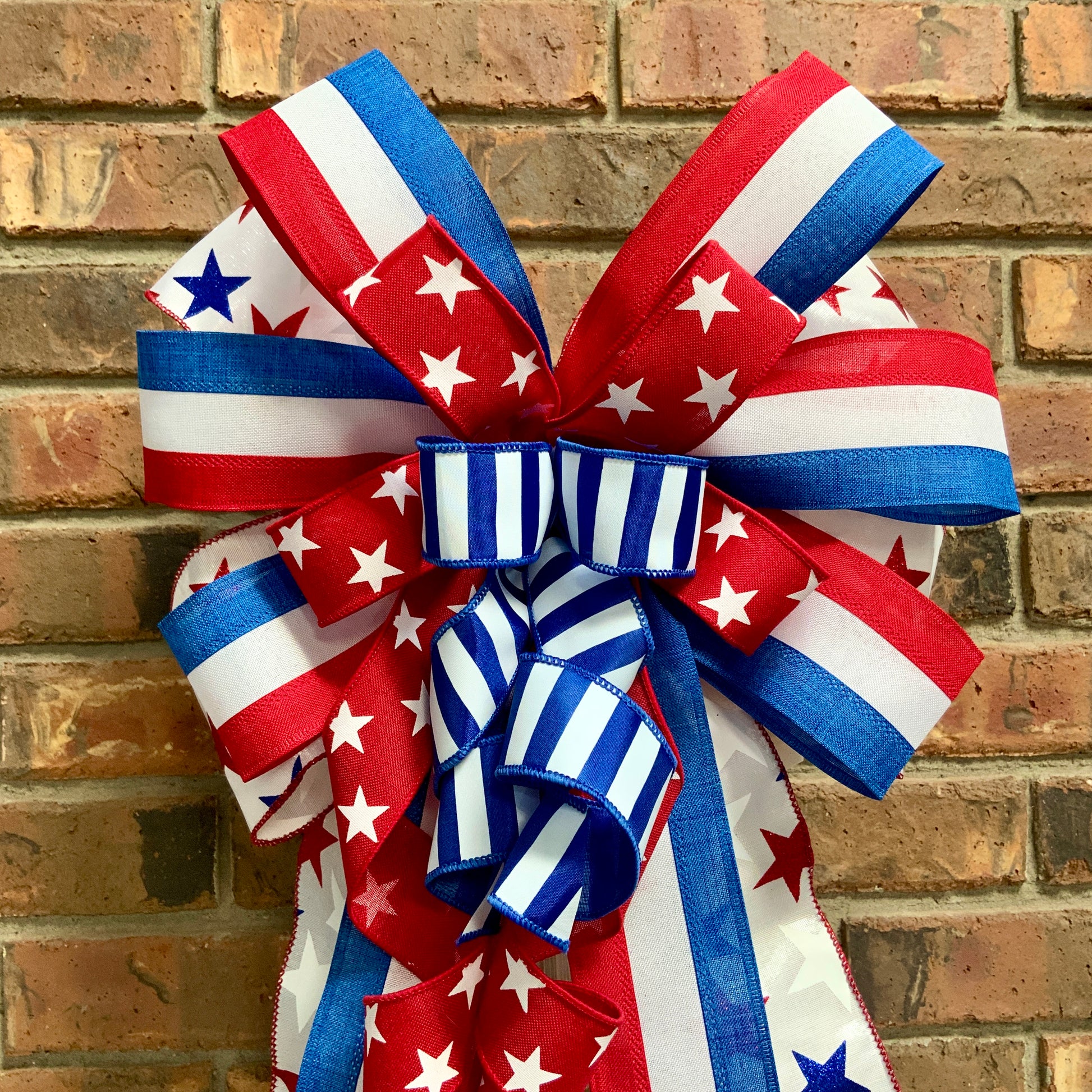 Patriotic Bow, American Bow, USA Bow, Fourth of July Sconce Bow, Independence Day Mailbox Bow, Patriotic Lantern Bow, Memorial Day Decor, Veterans Day Decor, 2024
