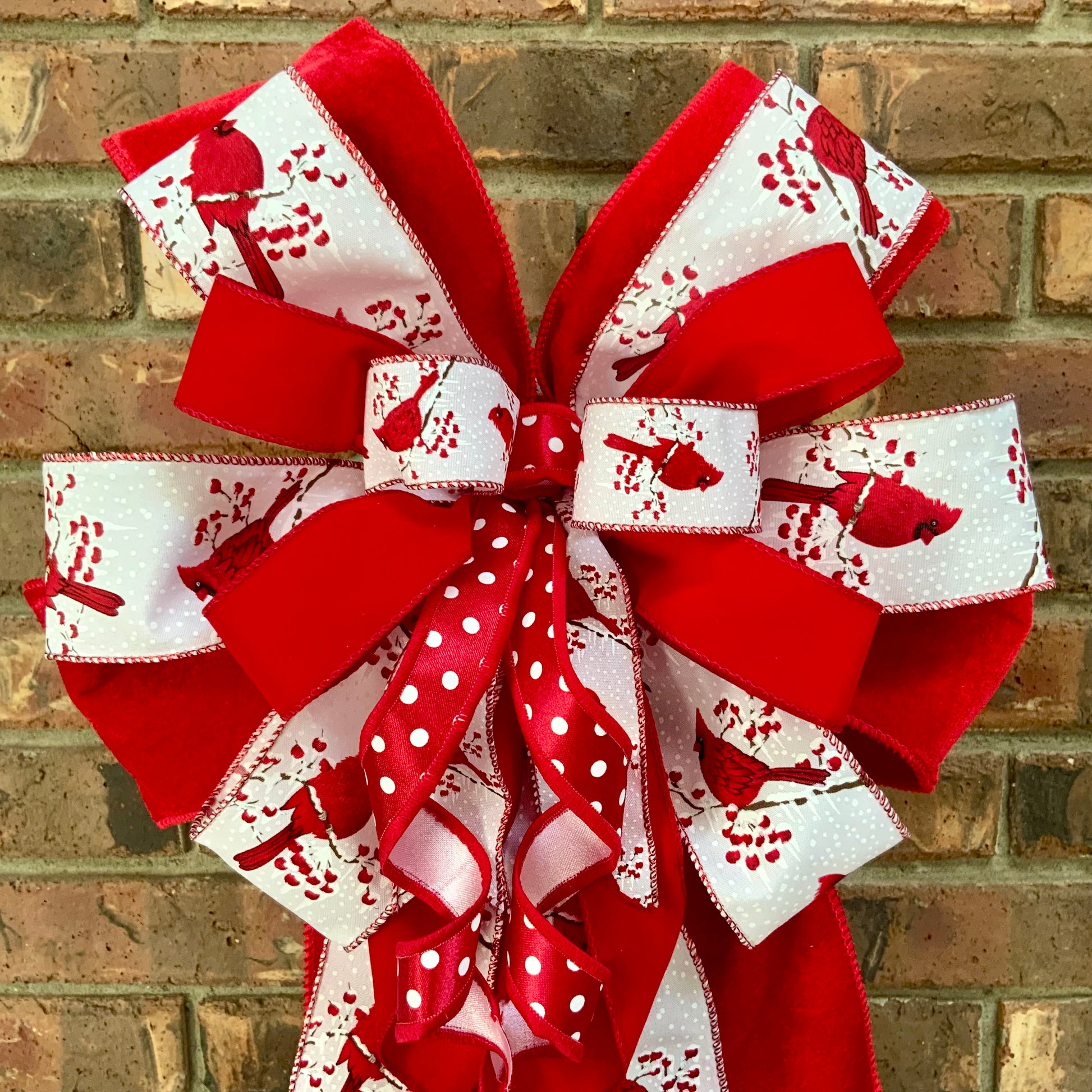 Red Cardinal Bow, Red Cardinal Christmas Decor, Christmas Bow, Winter Bow, Holiday Bow, Christmas Mailbox Bow, Christmas Lantern Bow, 2025