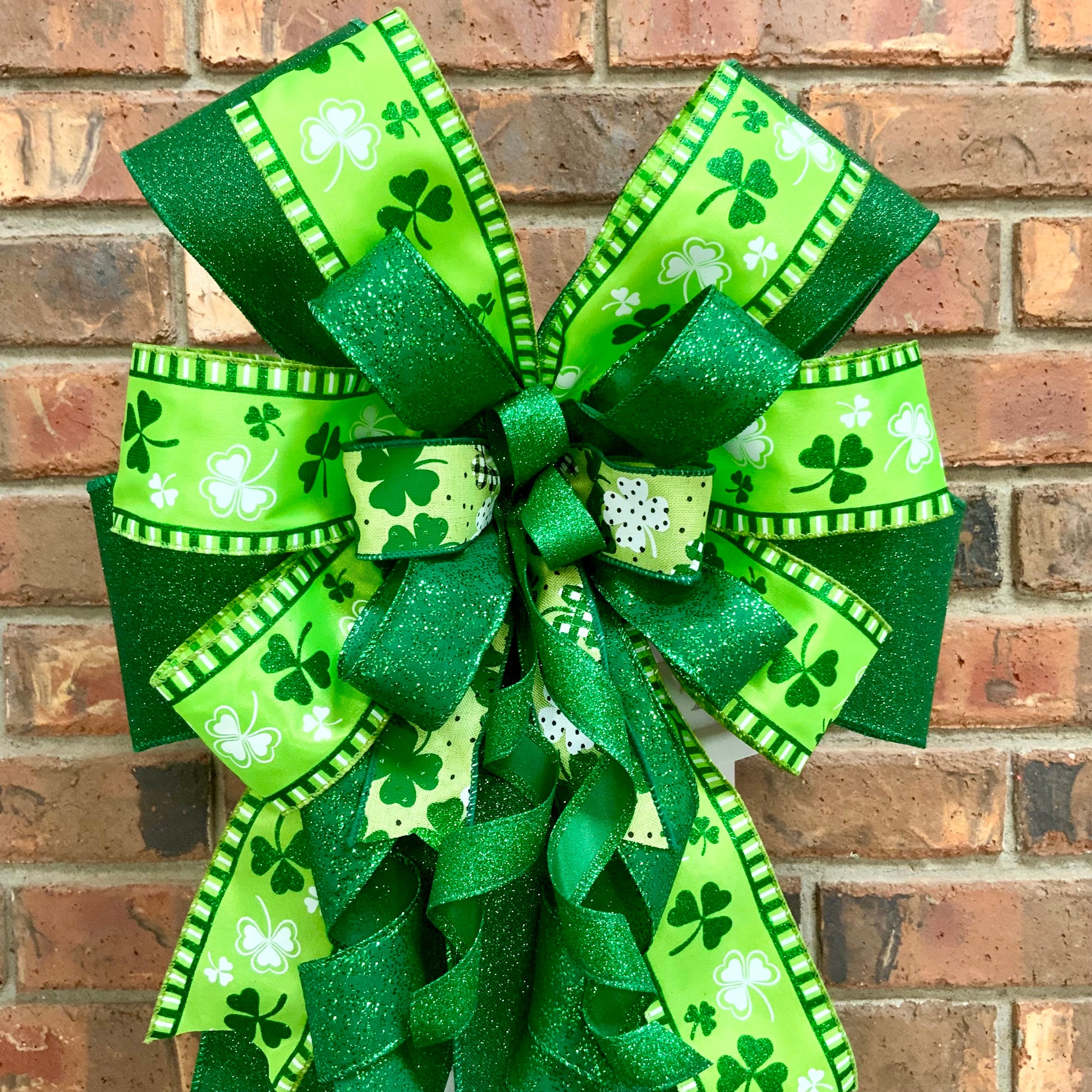 St Patrick's Day Bow, St. Patrick's Day Decor, Shamrock Bow, Clover Bow, Luck of the Irish Decor, Lantern Bow, Mailbox Bow, 2025