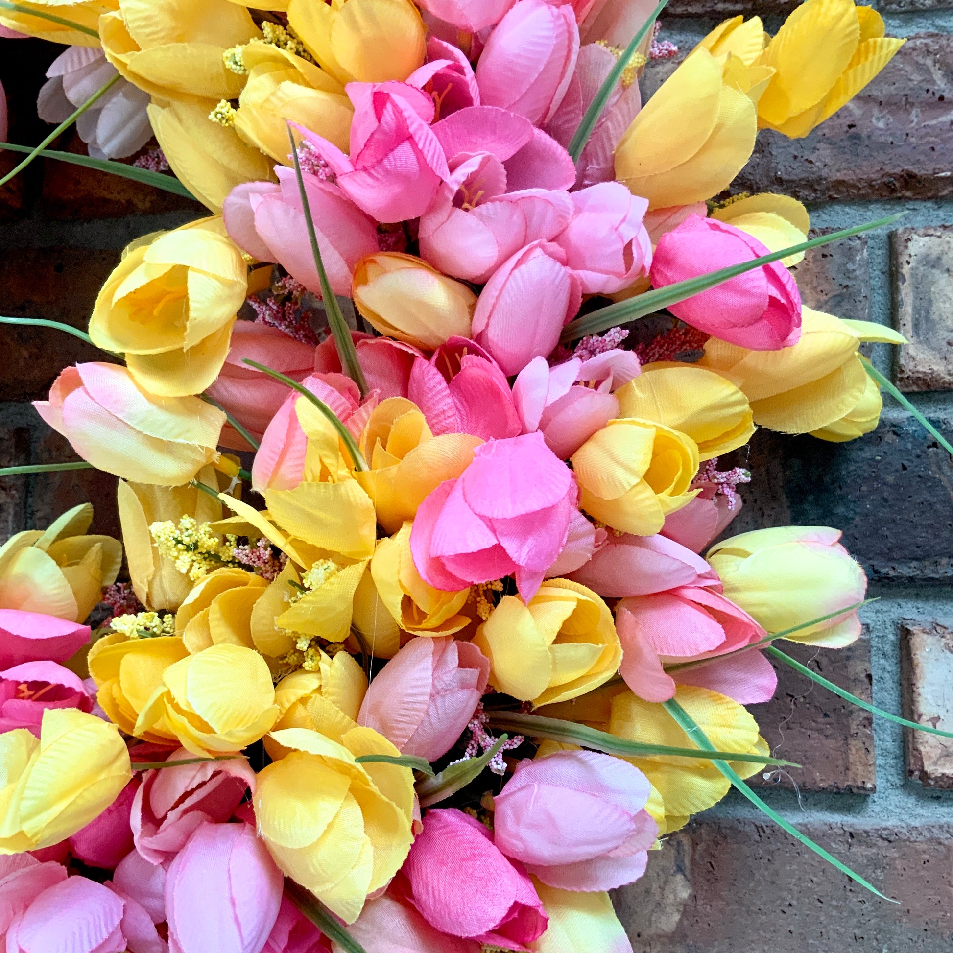 Welcome spring into your home with our beautiful Tulip Grapevine Wreath. Made with grapevine and adorned with vibrant tulips, this wreath is the perfect addition to your front door for Easter or any spring occasion. Its natural and cheerful design will surely brighten up your home.