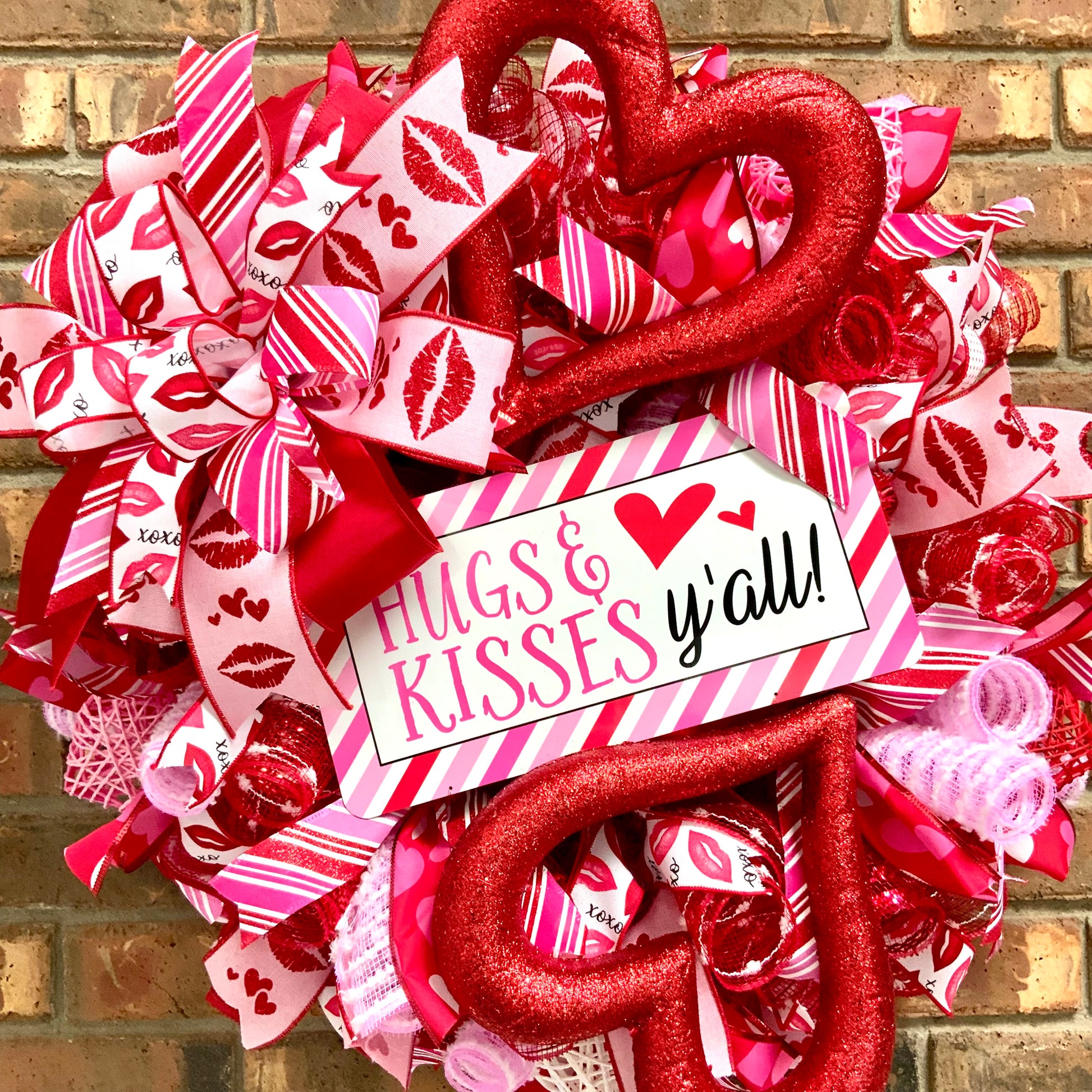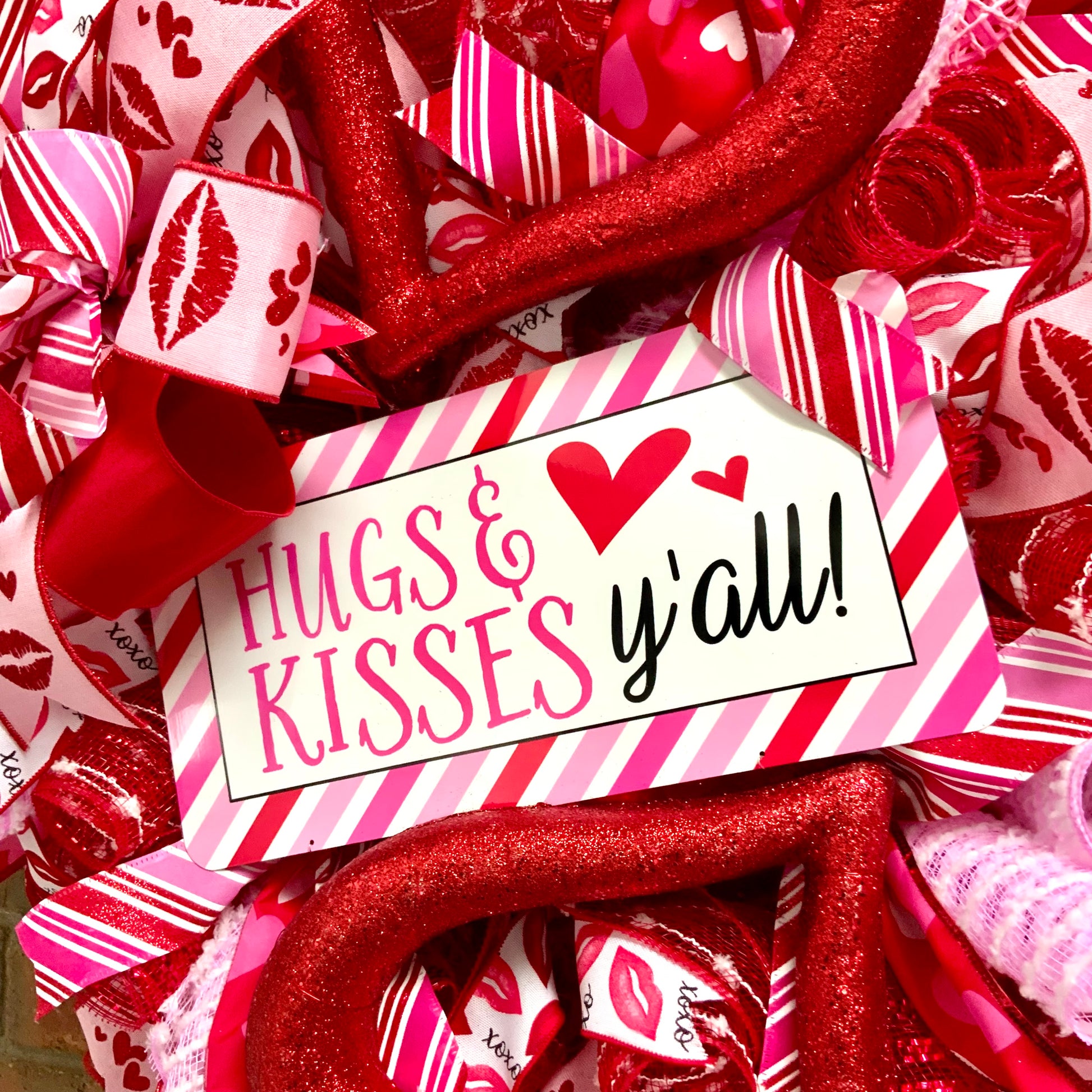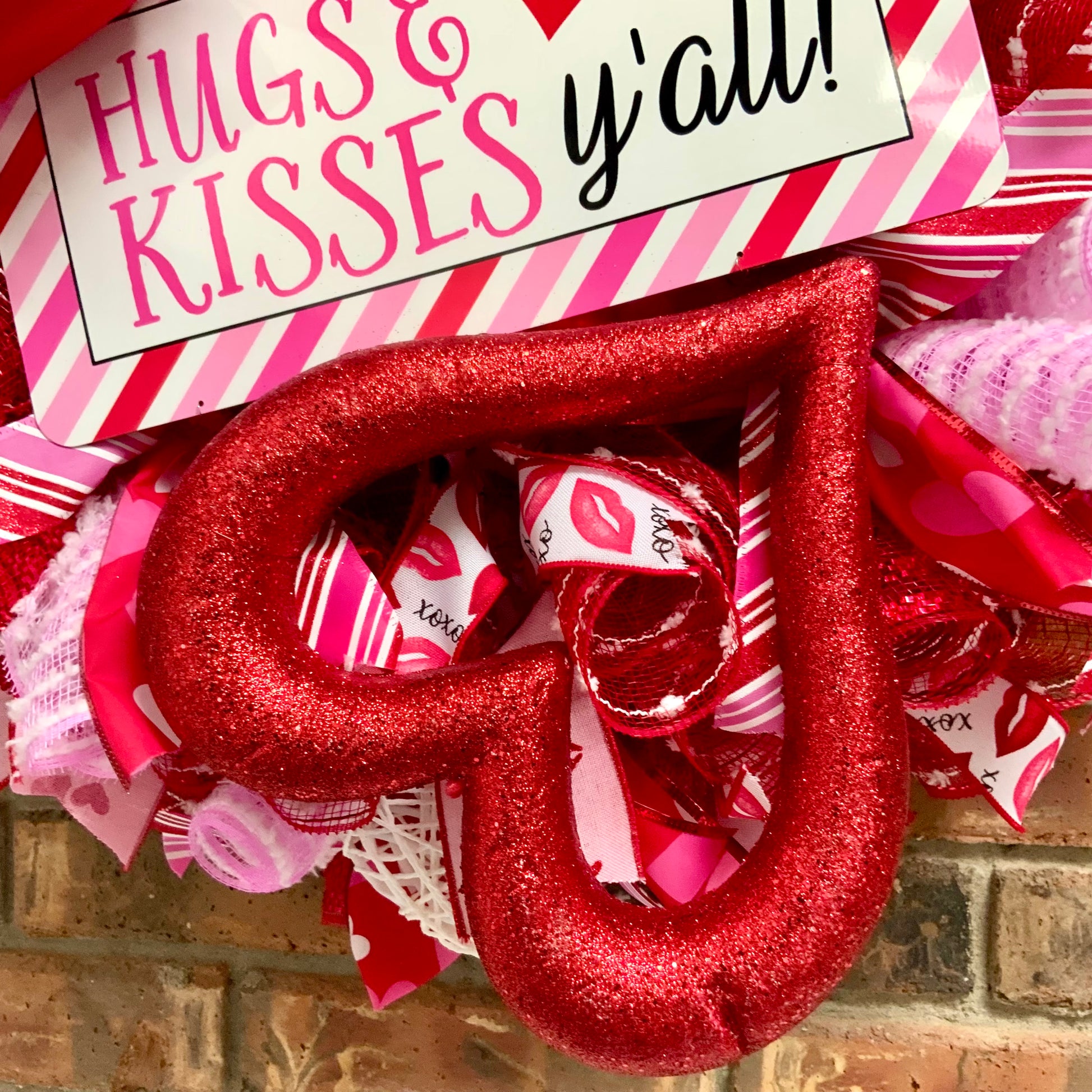 Celebrate the season of love with our Valentines Day Wreath! Adorned with festive kisses and a heartwarming "Hugs and Kisses y'all" sign, this charming wreath will add a touch of sweetness to any door. Complete with glittered hearts, it's the perfect way to spread love and joy.