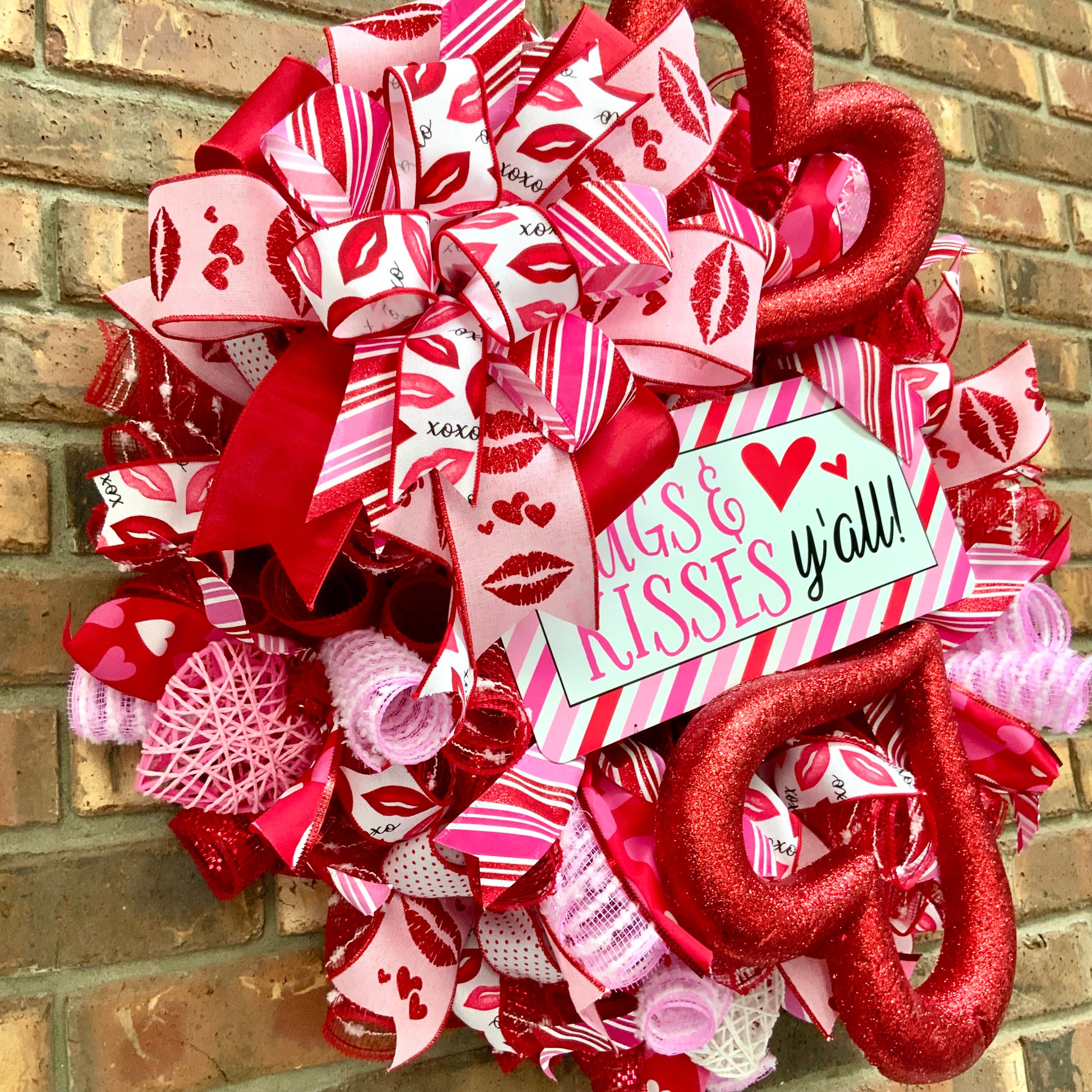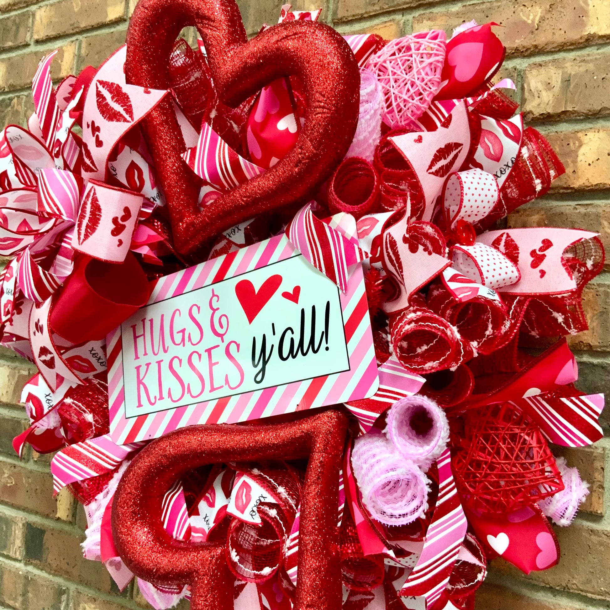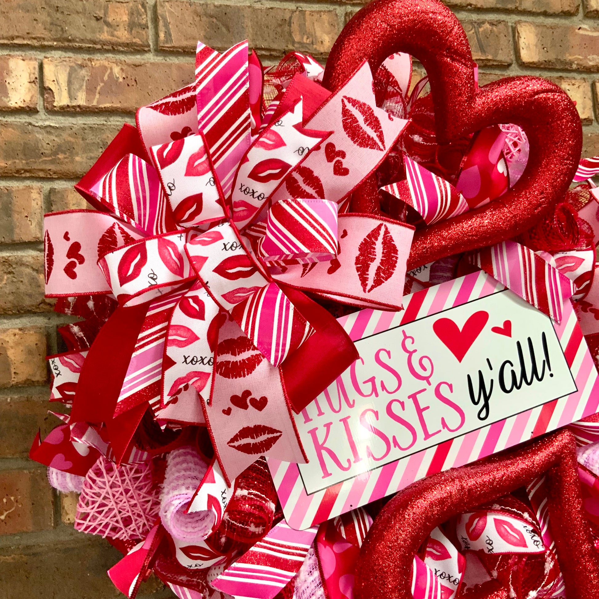 Celebrate the season of love with our Valentines Day Wreath! Adorned with festive kisses and a heartwarming "Hugs and Kisses y'all" sign, this charming wreath will add a touch of sweetness to any door. Complete with glittered hearts, it's the perfect way to spread love and joy.